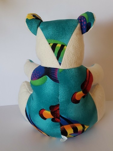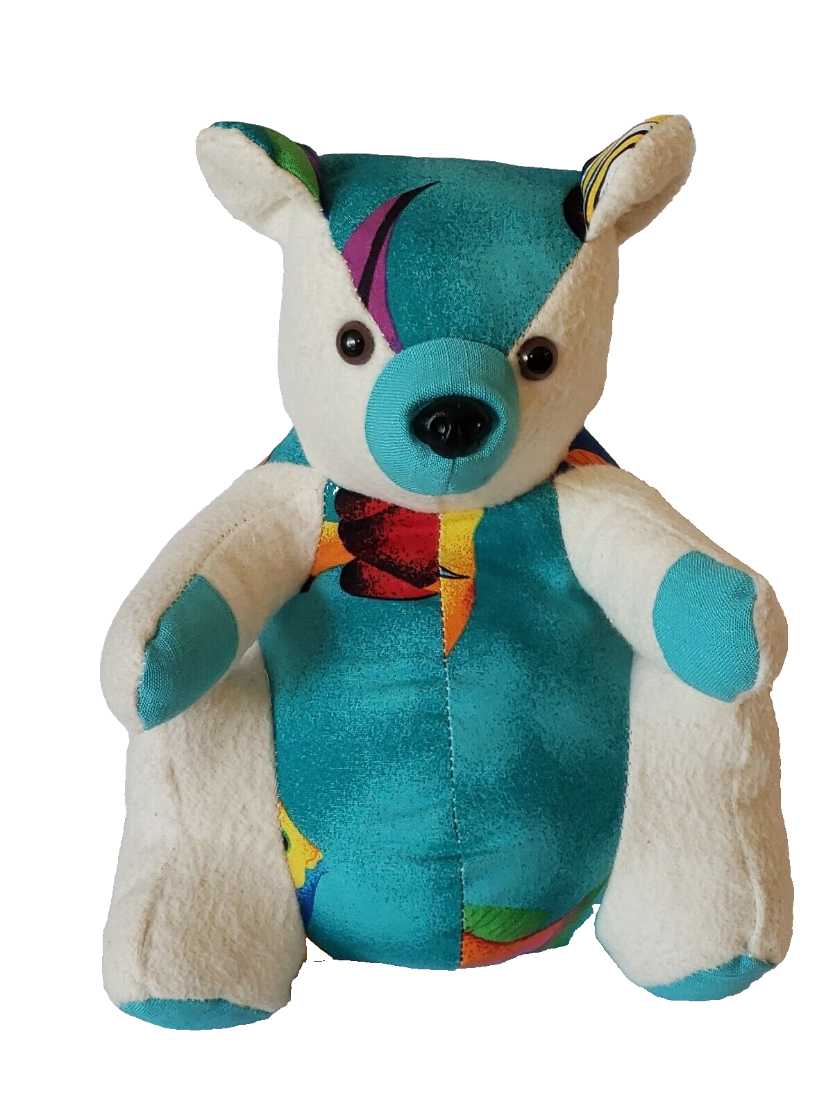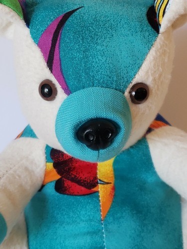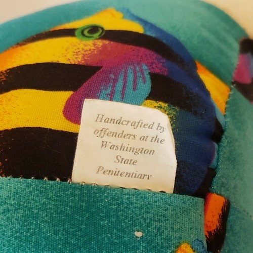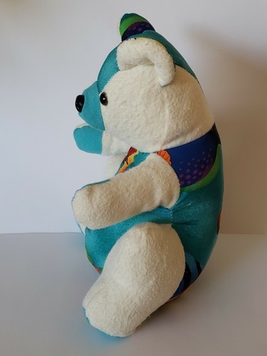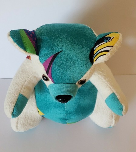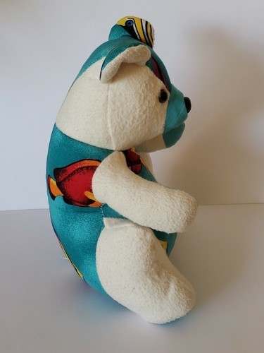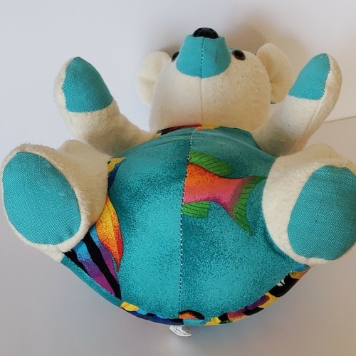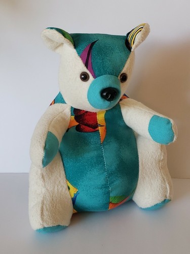 Inmate Made Teddy Bear OOAK WW State Penitentiary Cloth Teal Aloha Flannel 10.5