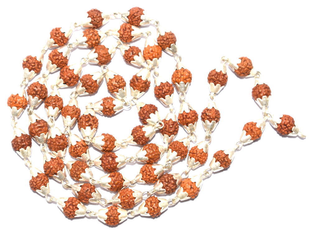Product Name : Rudraksha Mala In Silver Conical Caps ? 6 MM