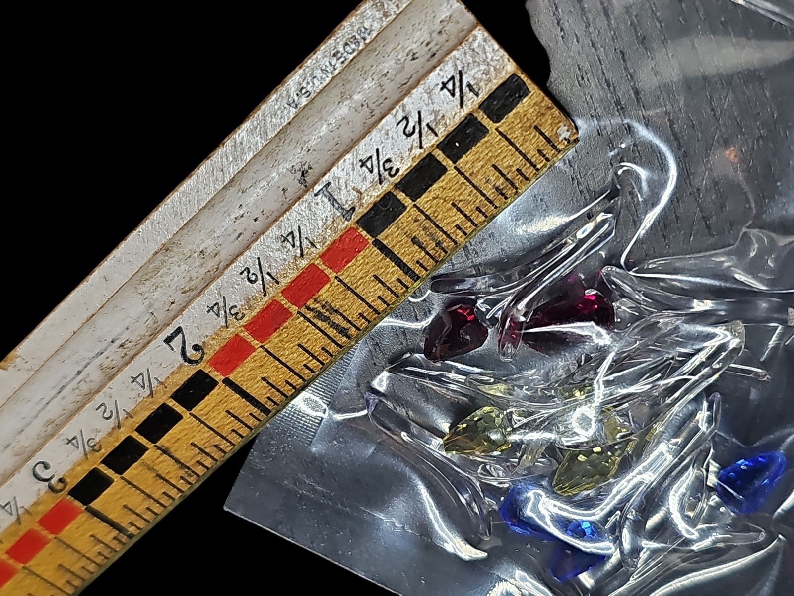 UP FOR SALE: Sealed Swarovski Crystal Mini Tulips Figurines Lot of 9 Yellow Blue Red w/ Display