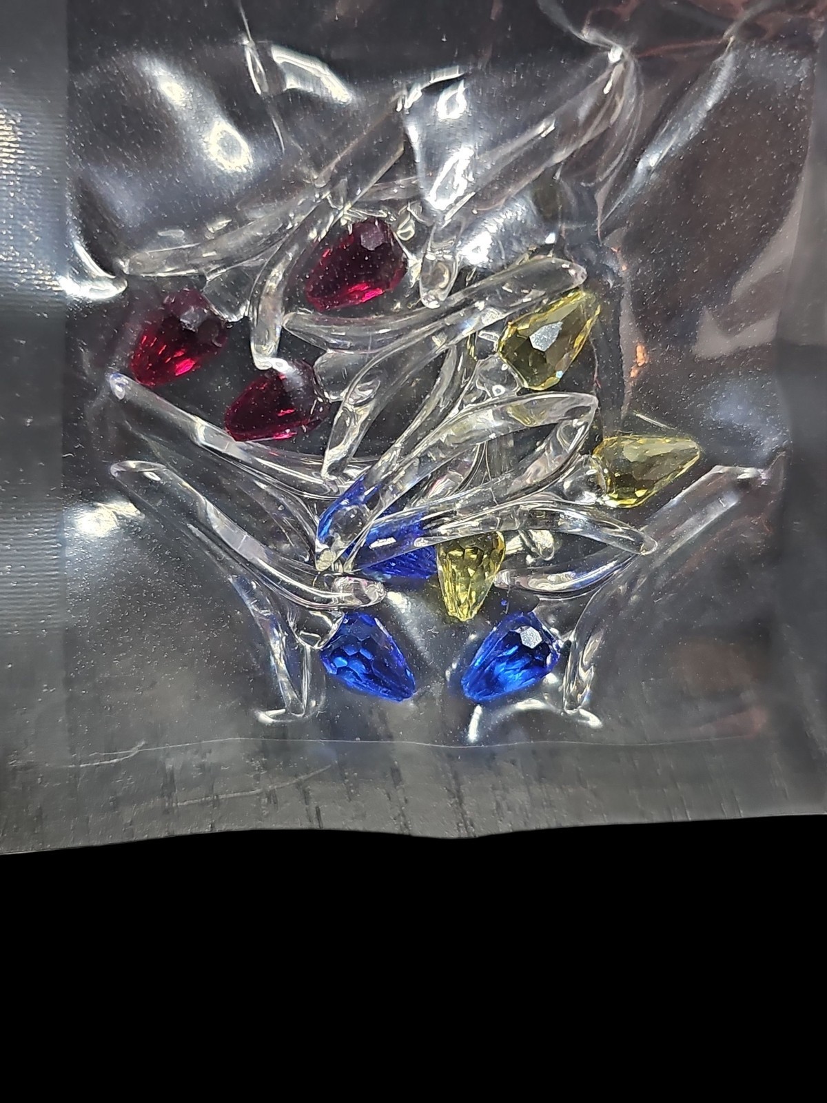 Set of 9 Swarovski crystal mini tulip figurines in yellow, blue, and red. Each tulip is factory sealed in its original plastic bag, never displayed or handled. These are new old stock (NOS) pieces, part of Swarovski?s miniature flower line.