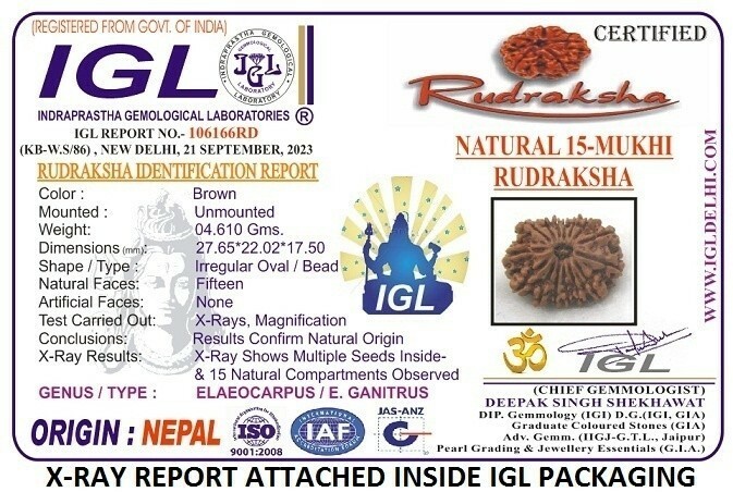 15 Mukhi Rudraksha - Nepal - Collector Size - 27.65 mm - IGL Certified