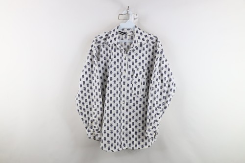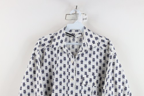 Vintage 90s Streetwear Womens Medium Geometric Crest Baggy Collared Button Shirt
