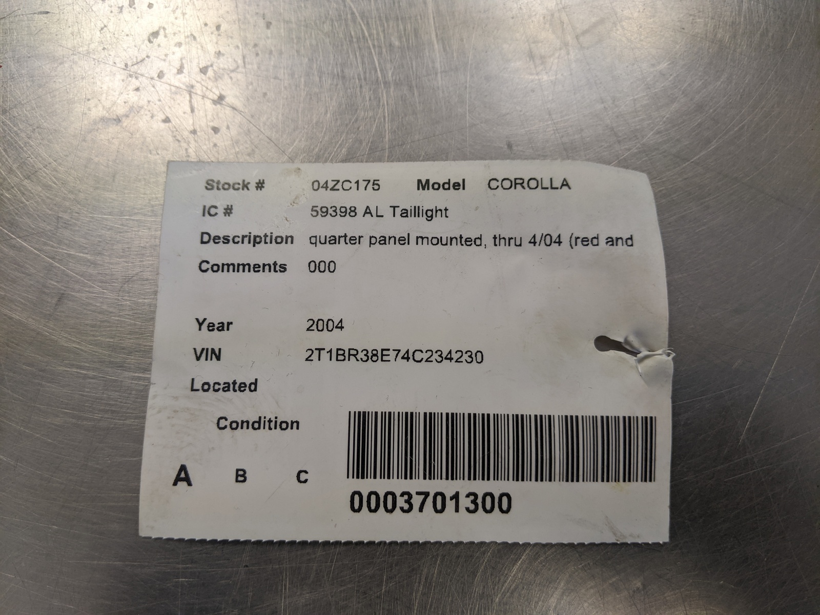 Driver Left Tail Light For 03-04 Toyota and 50 similar items