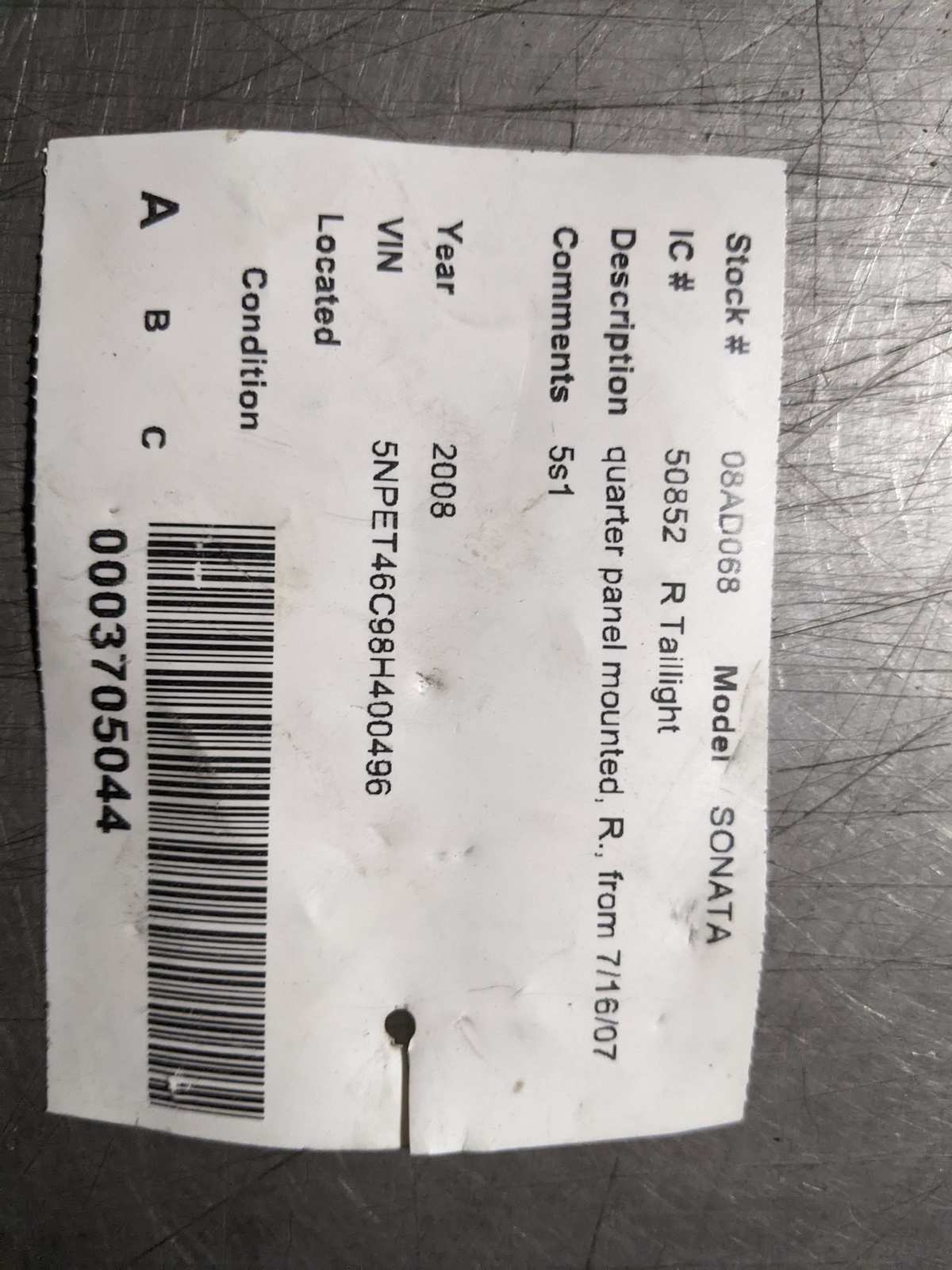 Passenger Right Tail Light For 06-08 Hyundai Sonata 2.4 924010A000