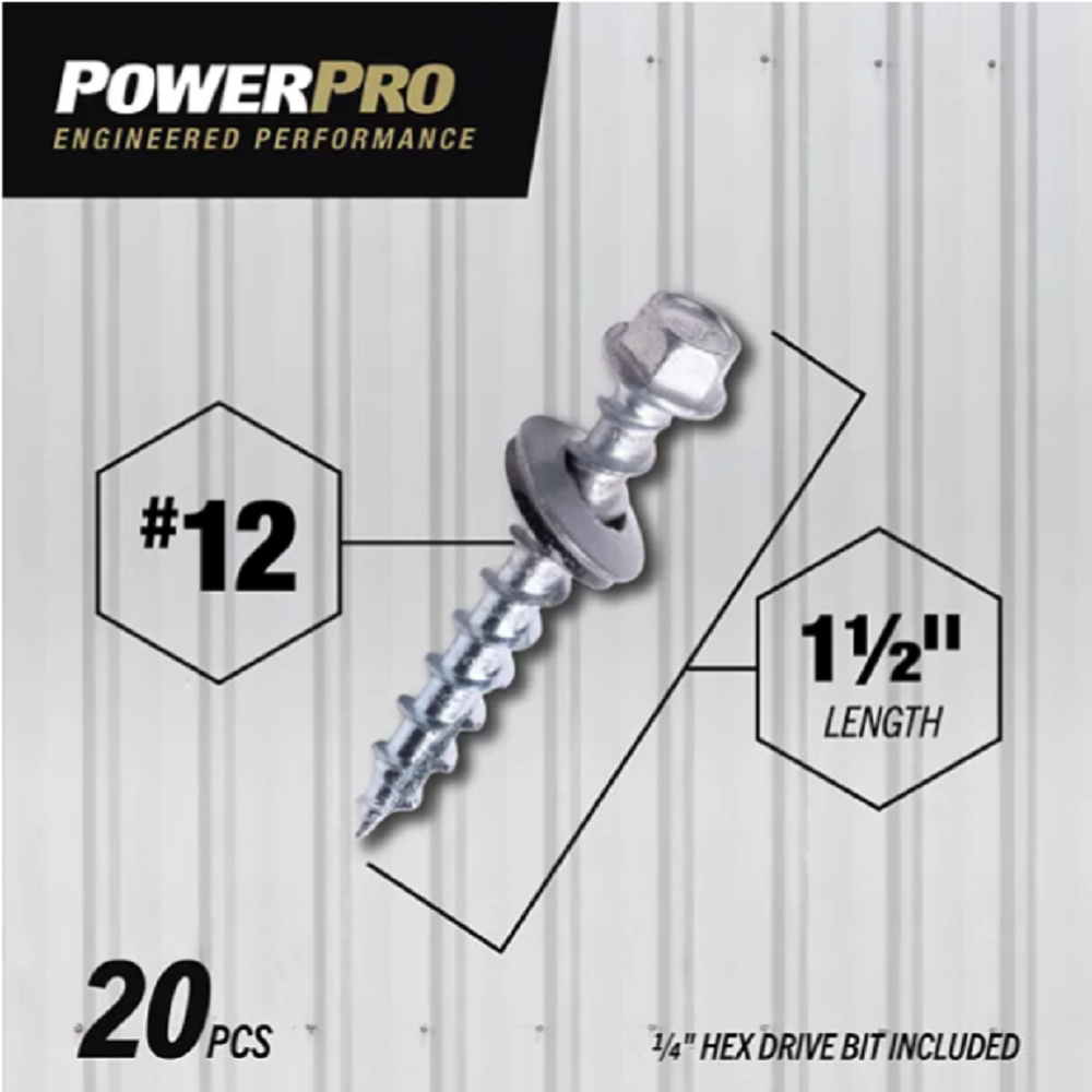 Hillman 117956 Power Pro Metal-to-OSB Roofing Screws, #12-14x1-1/2", 20 Pcs