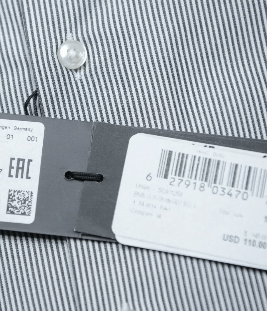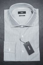 NWT Hugo Boss Men's Union Regular Fit Grey Striped Dress Shirt