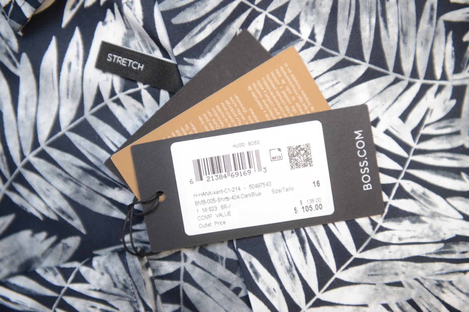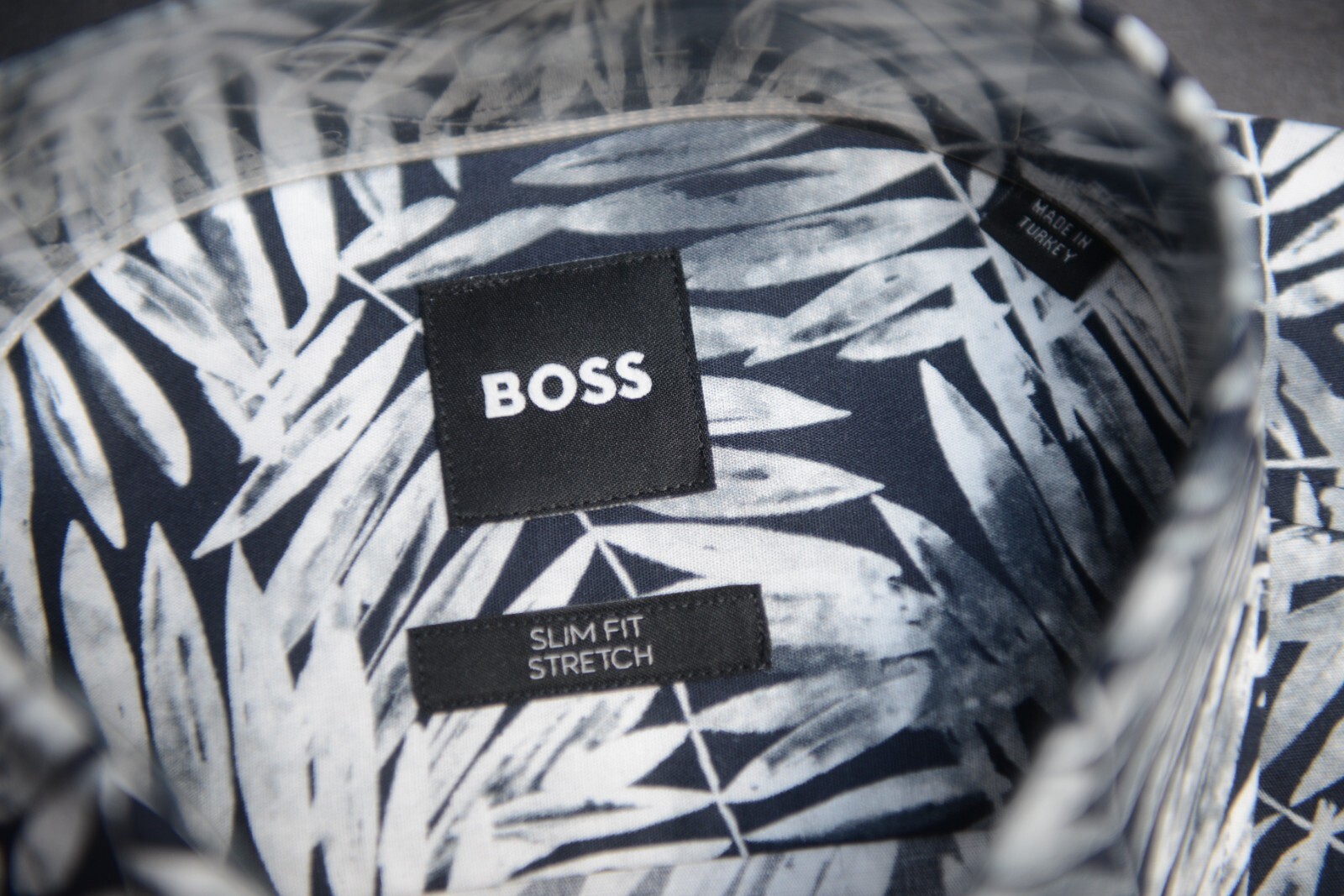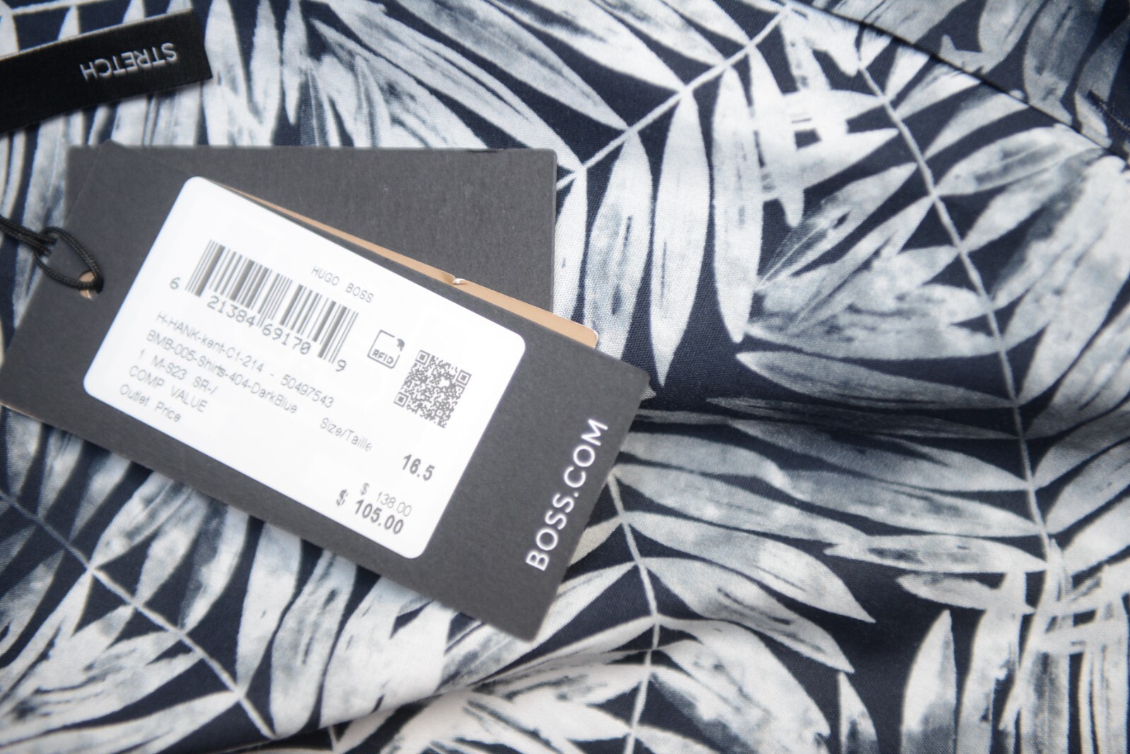 HUGO BOSS Hombre Hank Kent Ajustado Hoja Estampado Algodon Elastico Camisa 39