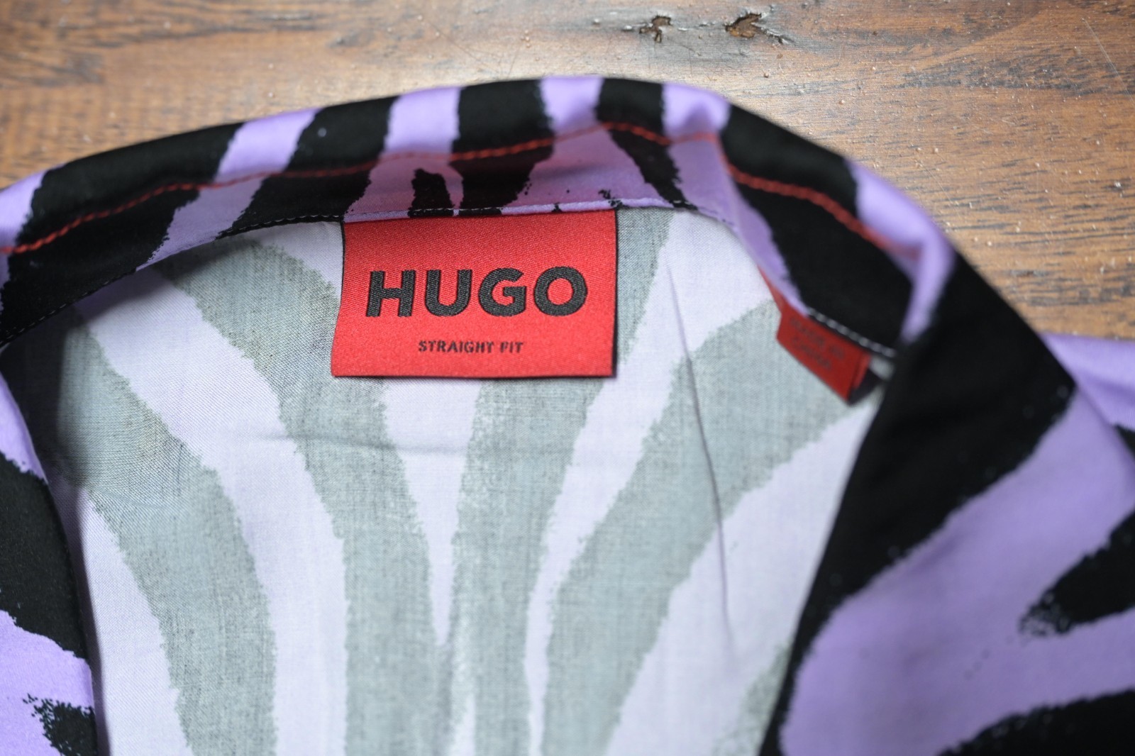 HUGO BOSS Hombre Ellino Manga Corta Corte Recto Hugo Responsable Playa Camisa L