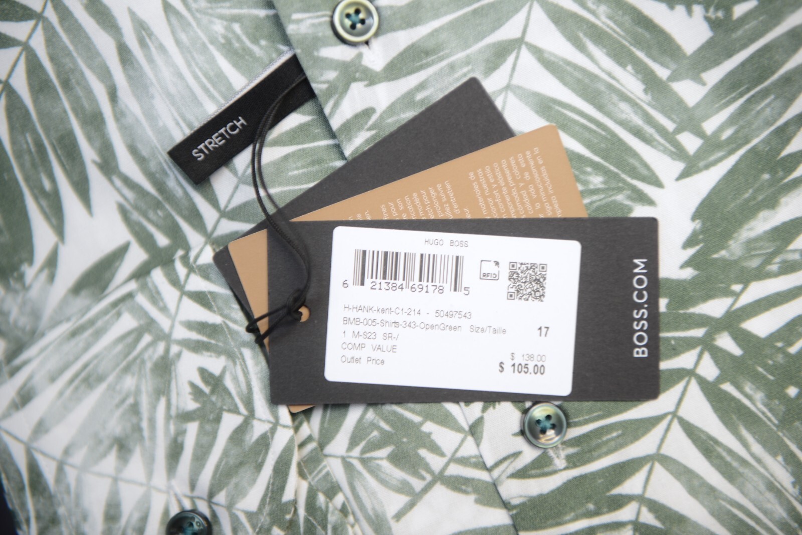 HUGO BOSS Hombre Hank Kent Ajustado Hoja Estampado Algodon Elastico Camisa 43
