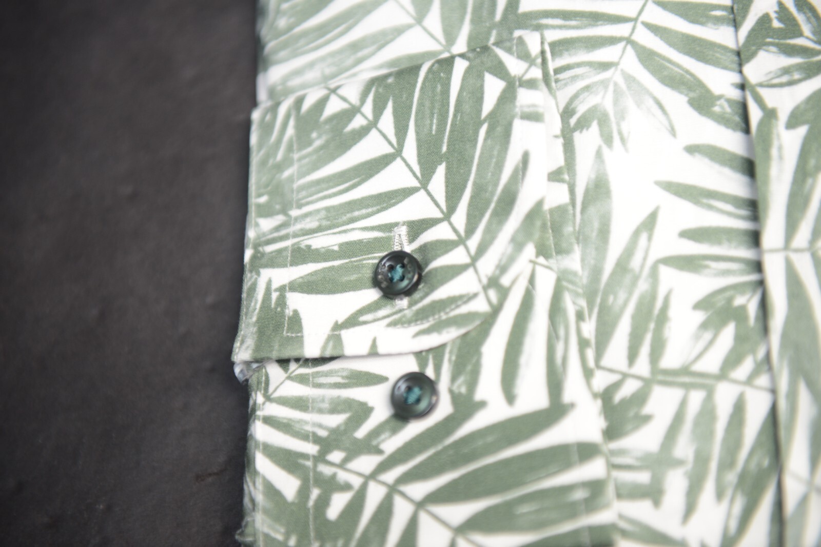 HUGO BOSS Hombre Hank Kent Ajustado Estampado de Hojas Algodón Elástico Camisa