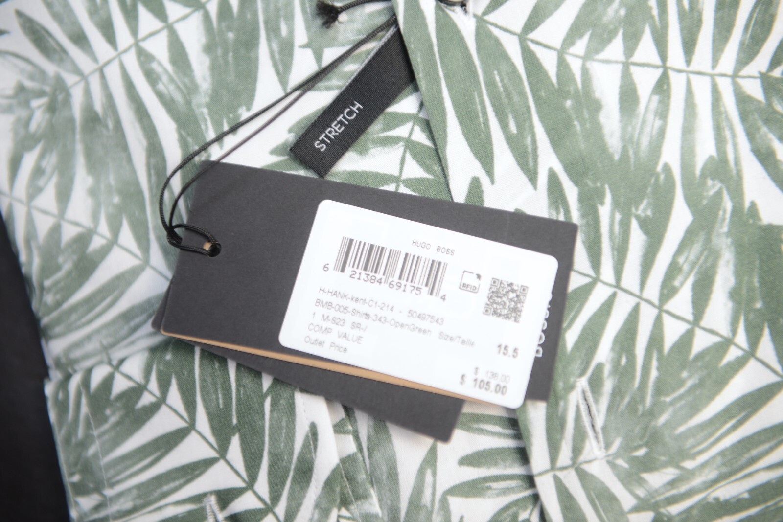 HUGO BOSS Hombre Hank Kent Ajustado Hoja Estampado Algodon Elastico Camisa 40