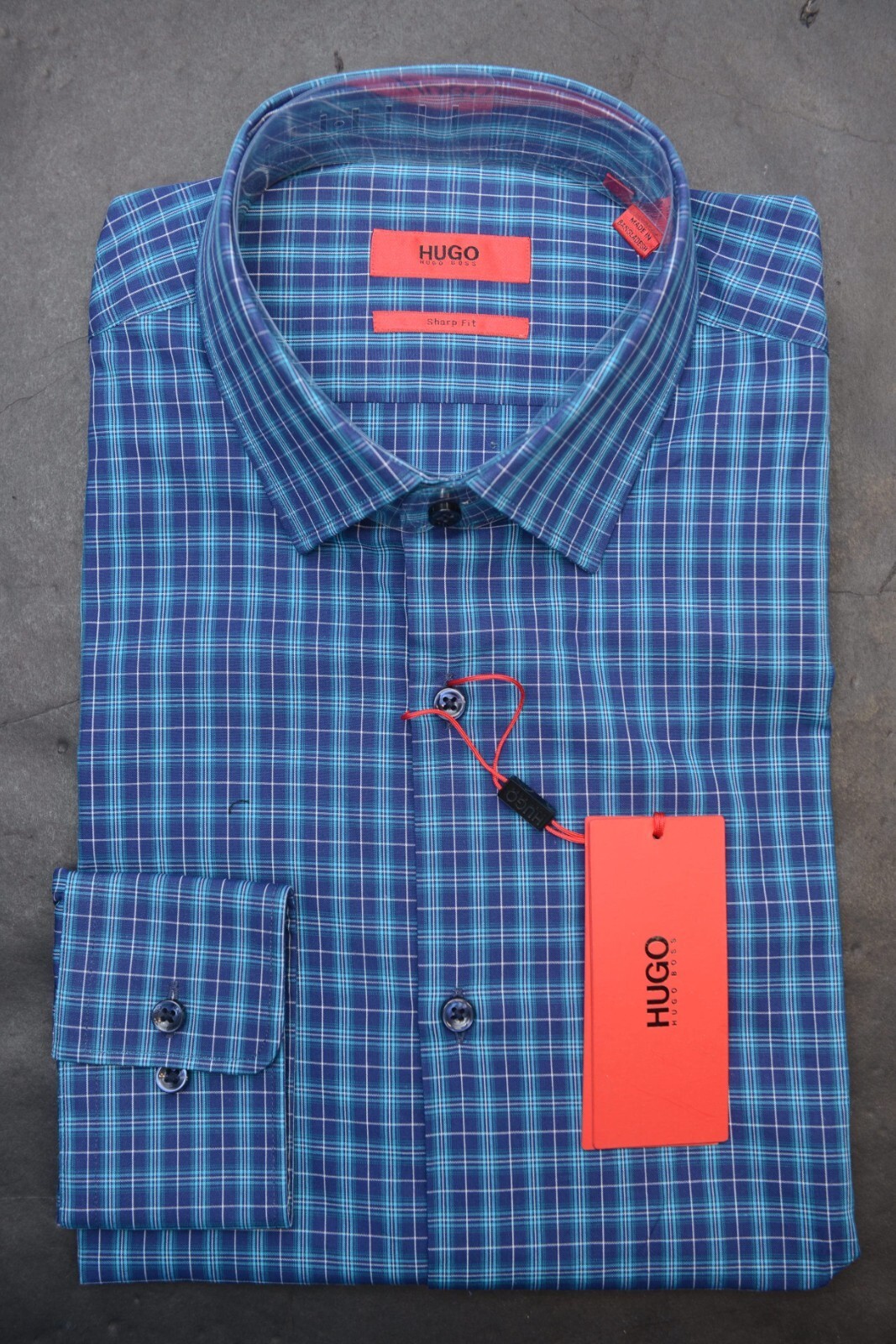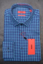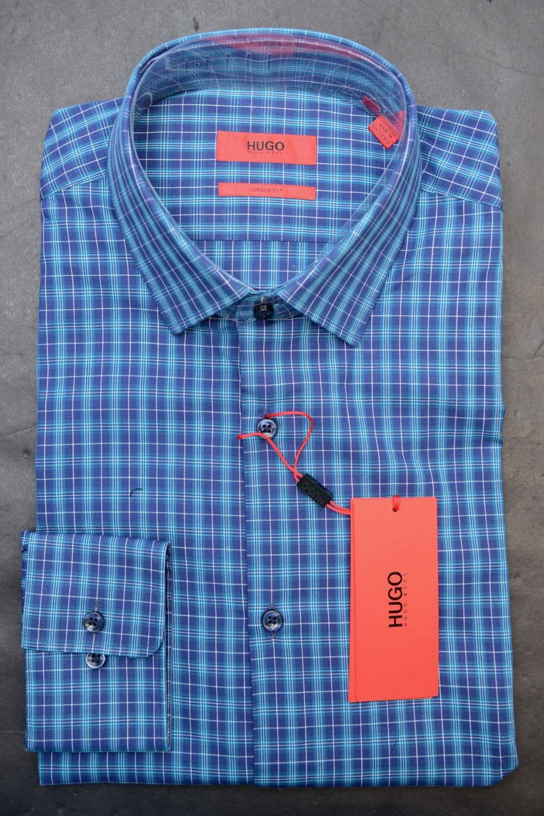 Hugo Boss Camicia Da Uomo Mabel Slim Fit A Righe Blu In Cotone 39 15.5 34/35