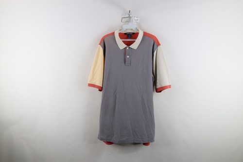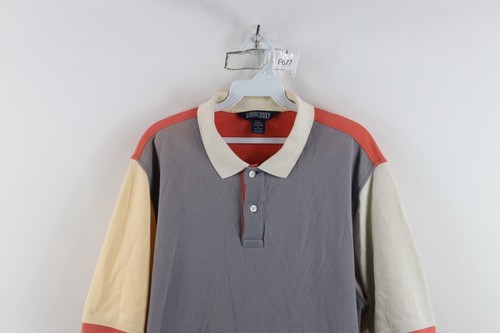 Vintage 90s Lands End Mens Large Distressed Color Block Golf Polo Shirt Cotton
