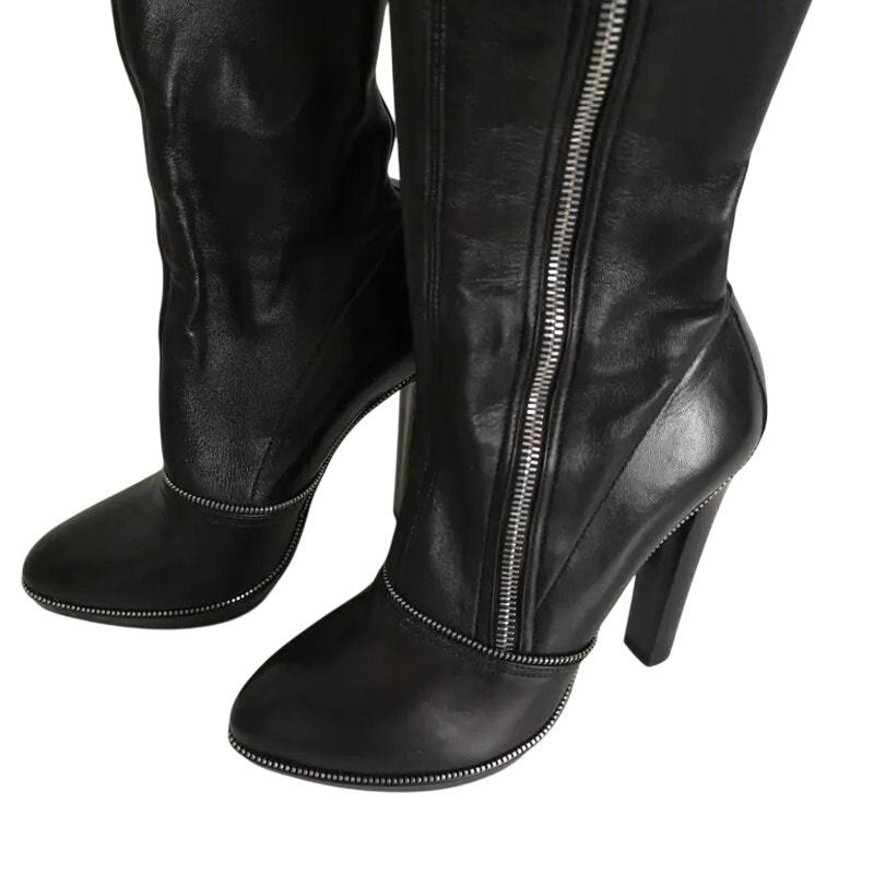 Alaïa Paris Black Leather Knee High Zipper and 30 similar items