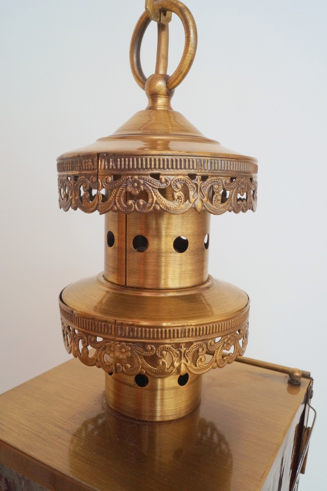 Unique Art Nouveau Flurlantern ceiling lamp hanging lamp brass.