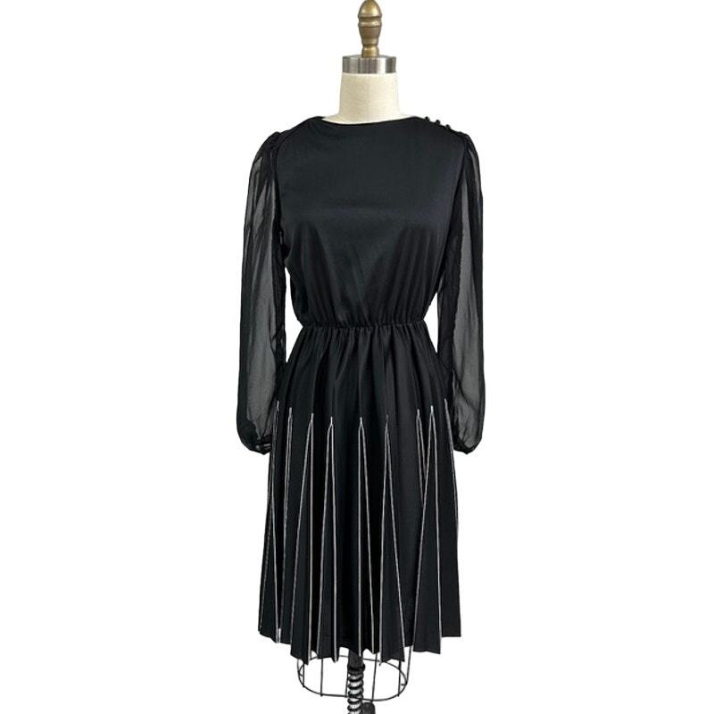 VTG 80s Riccardo Black White Pleated Skirt Dress Junya Style Sheer M