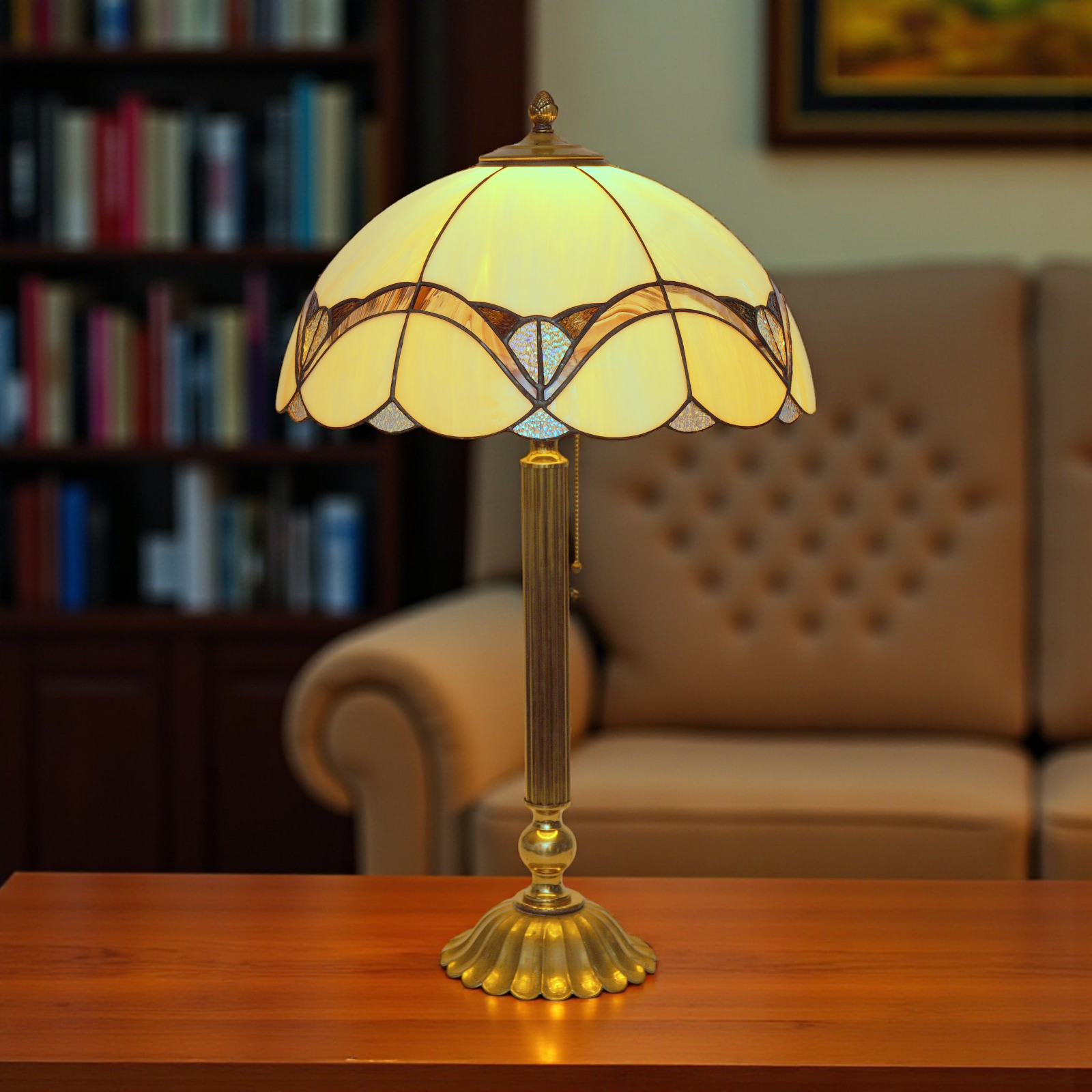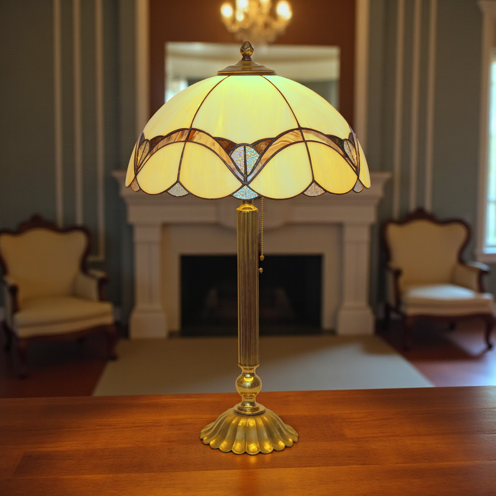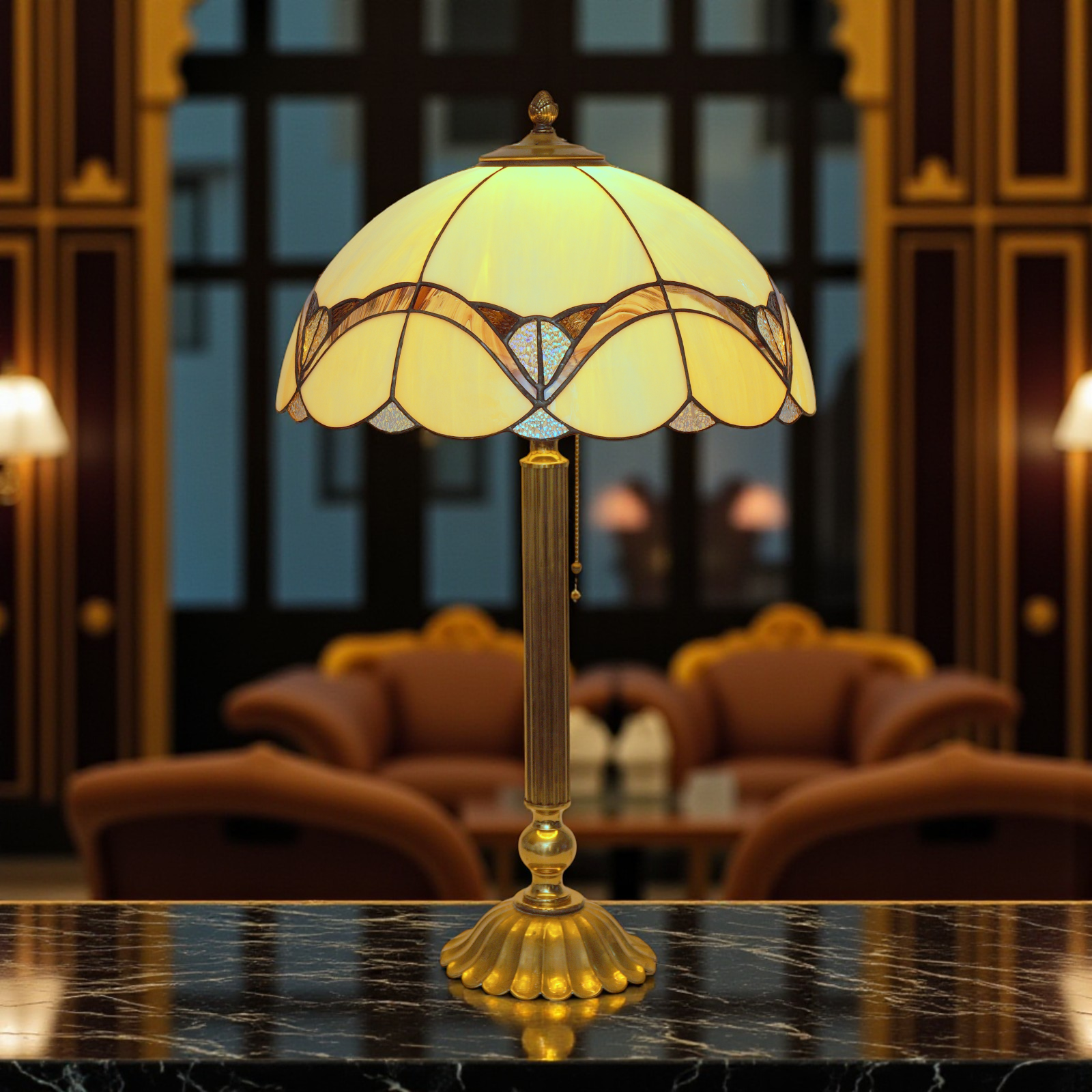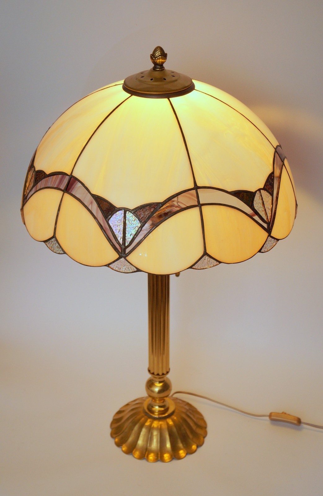 Delicate Art Deco Tiffany Table Lamp "POIROT" Unique Salon Lamp Brass Lamp