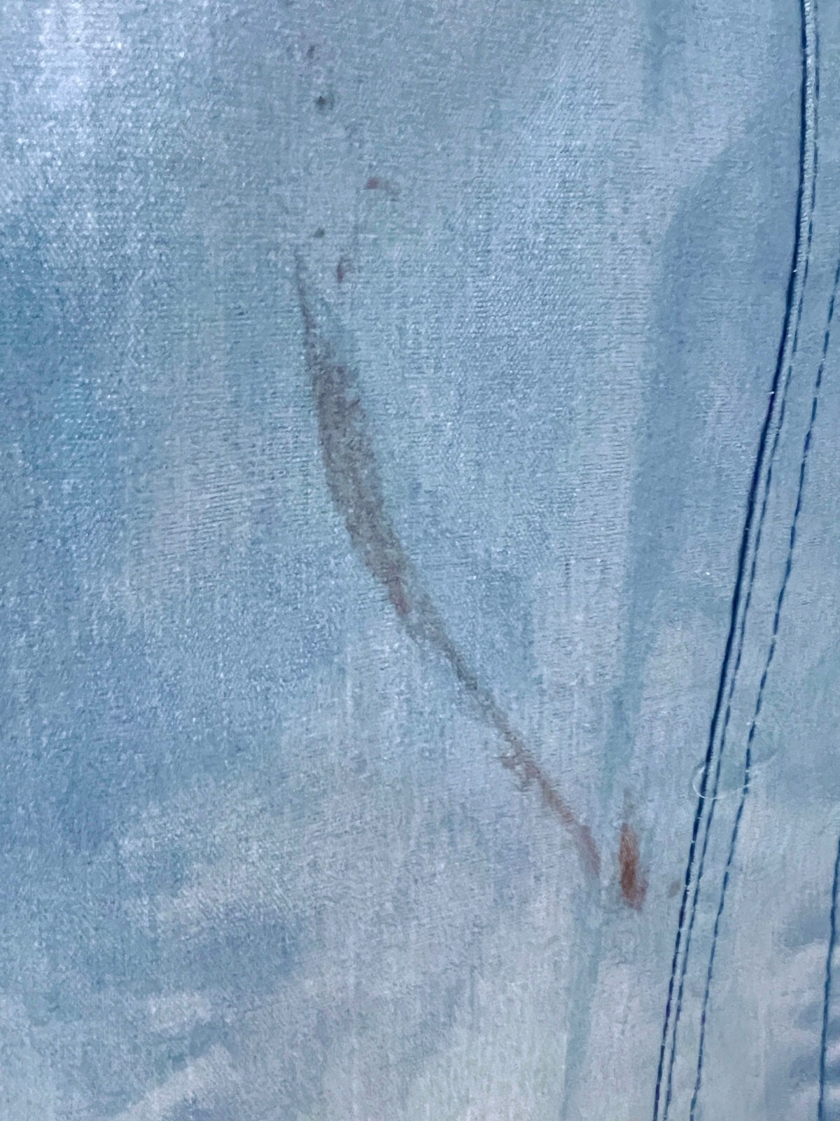 Very good vintage condition. Very light pit stains inside lining only, plus one faint stain on front (shown). Uncleaned, but stains are likely to lift with professional cleaning. No structural flaws.