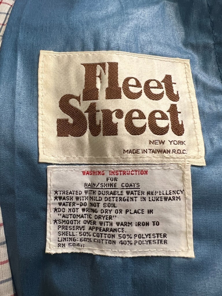 Fleet Street was a popular outerwear brand through the 60s?70s, known for stylish, affordable trench coats with fashion-forward tailoring. This piece captures the 1970s wide-collar trench trend, which carried into disco and Mob Wife wardrobes.