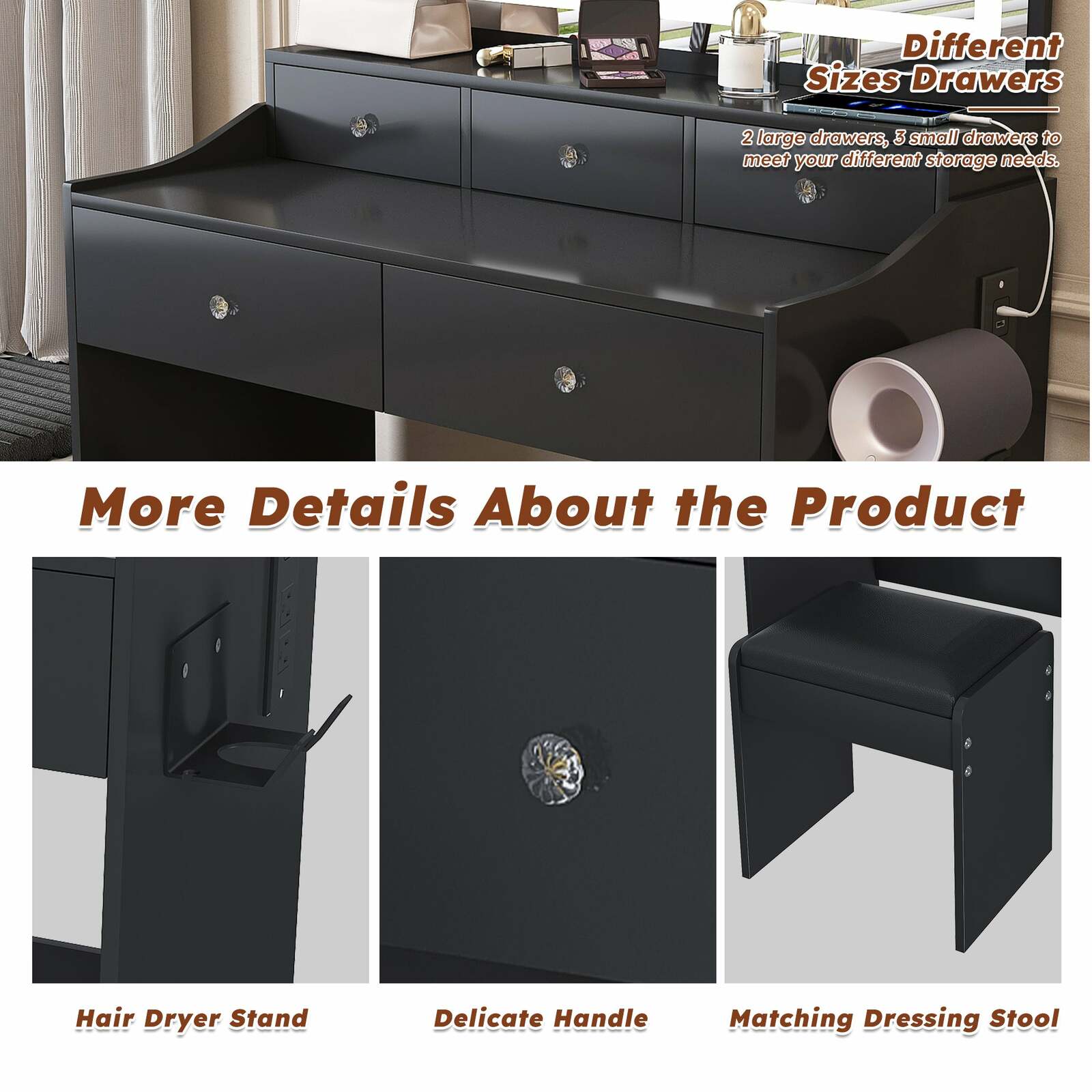 5 Roomy Drawers for Organized Storage ? Store all your beauty essentials in the 5 smooth-gliding drawers, designed to hold makeup, brushes, jewelry, and skincare products without clutter.