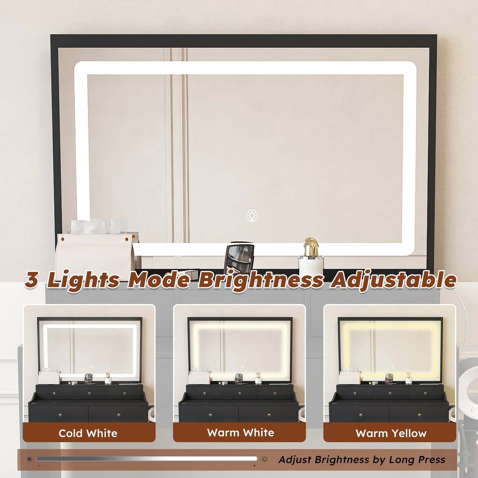 3 Adjustable Lighting Modes ? Customize your glow with 3 color temperatures (warm, cool, natural white) and brightness levels, ensuring perfect illumination for any time of day or makeup style.
