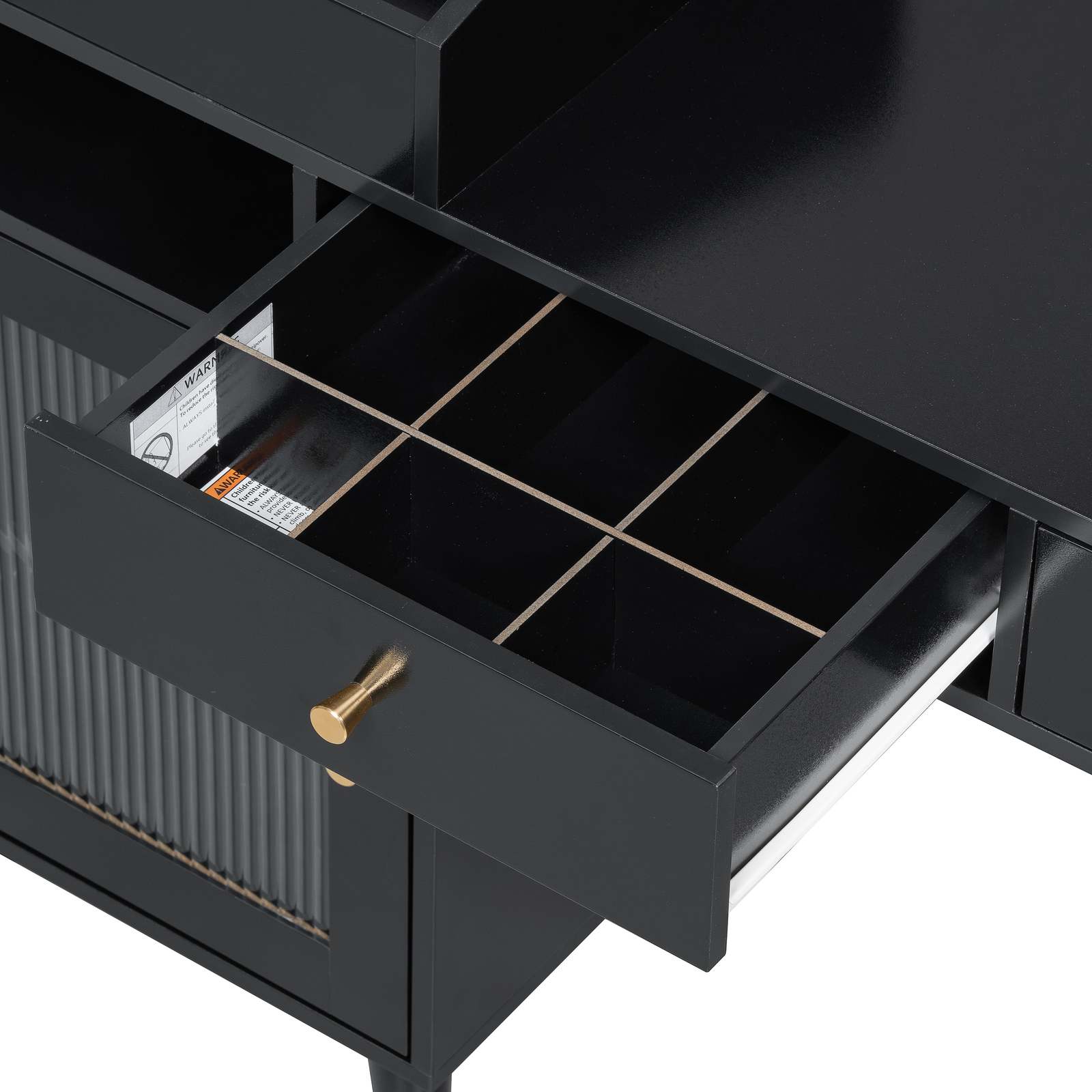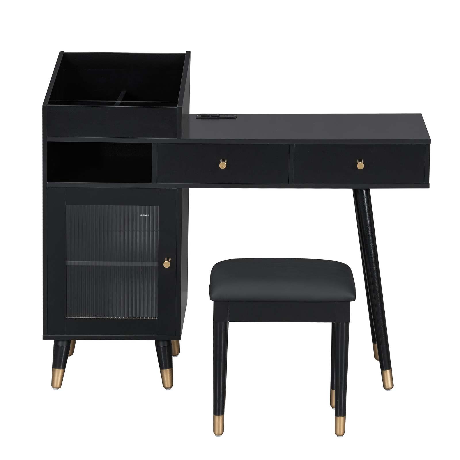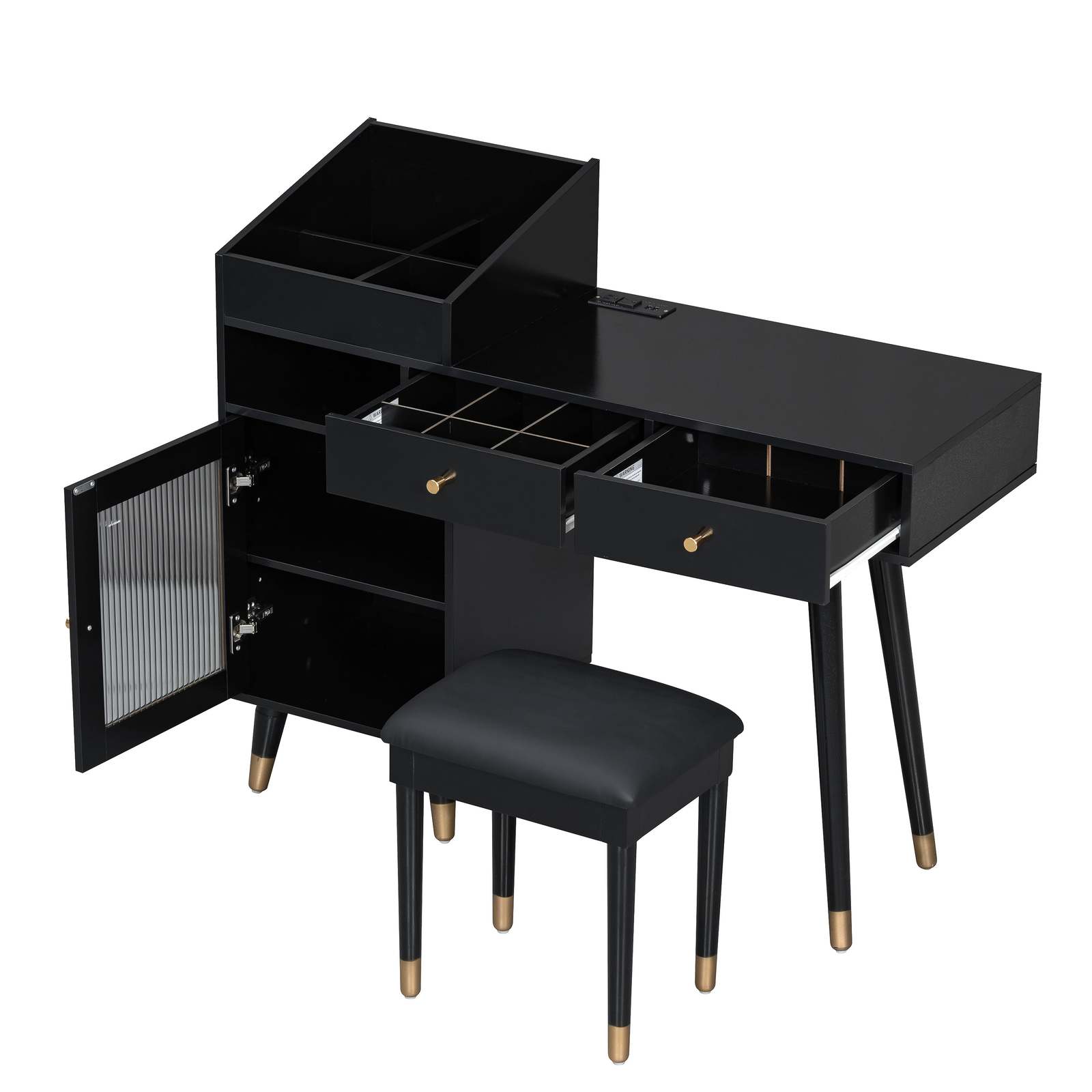 Space-Saving Black Makeup Vanity Desk: Drawers, Cabinet, Charging Port