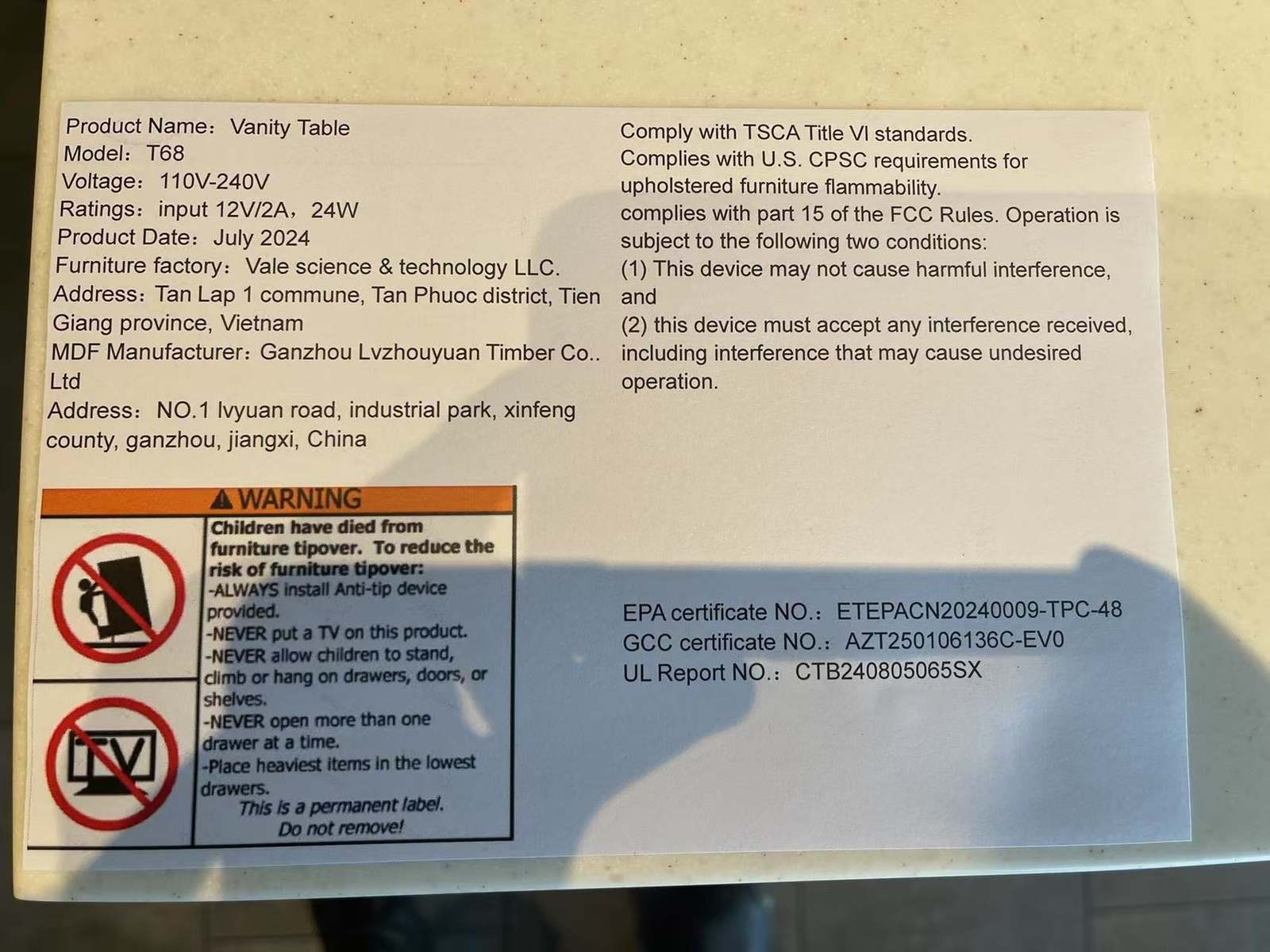 [Precautions]: There are about 40 boards composing the dressing table. Assembly is a time-consuming task that is expected to take 2-3 hours. 2. There is no numerical lable on each board, so it may be challenging to identify each board according to the image in the installation manual. 3. There may be slight sawdust residue on the boards inside the packaging, and if there are very strict requirements for it, it may not be suitable for you.