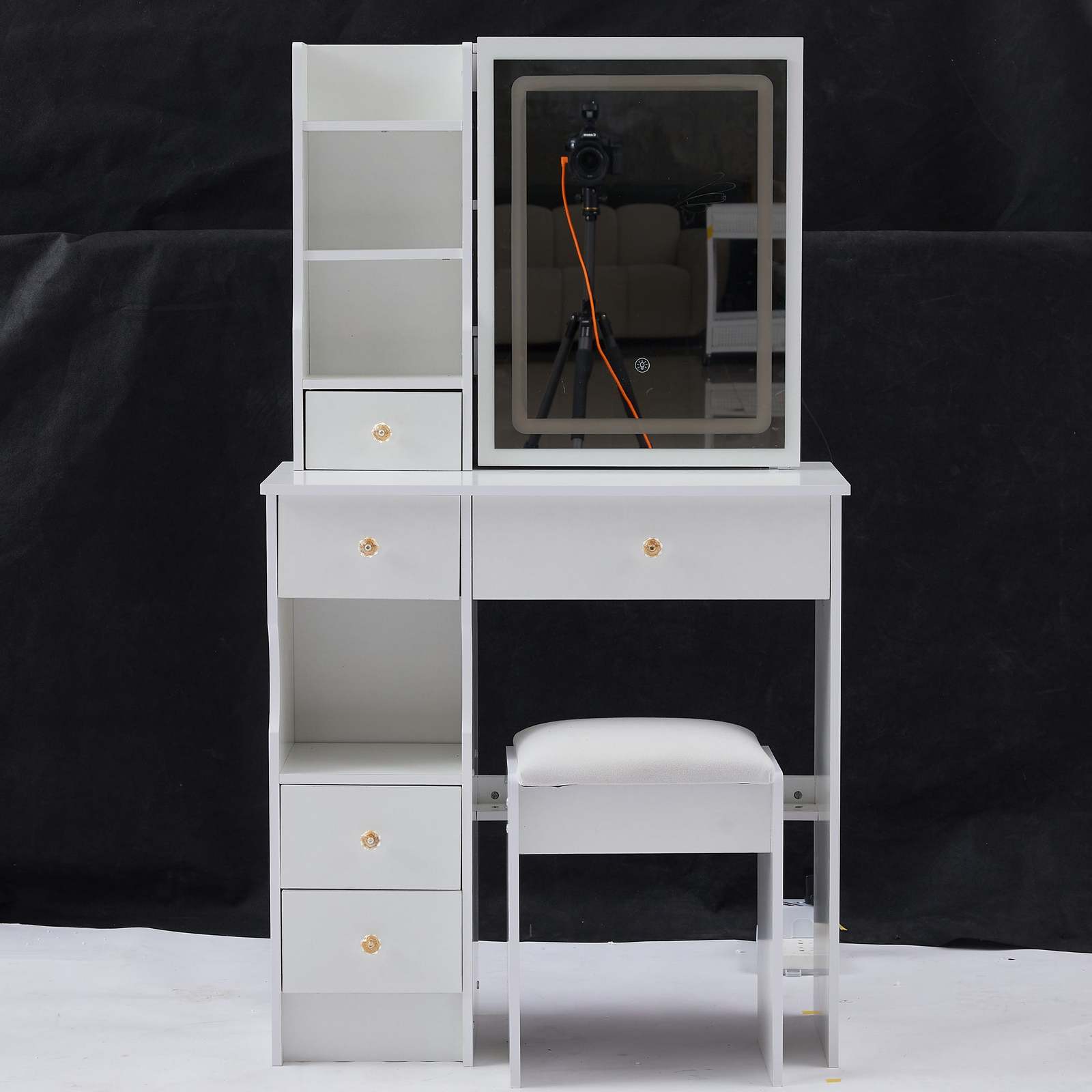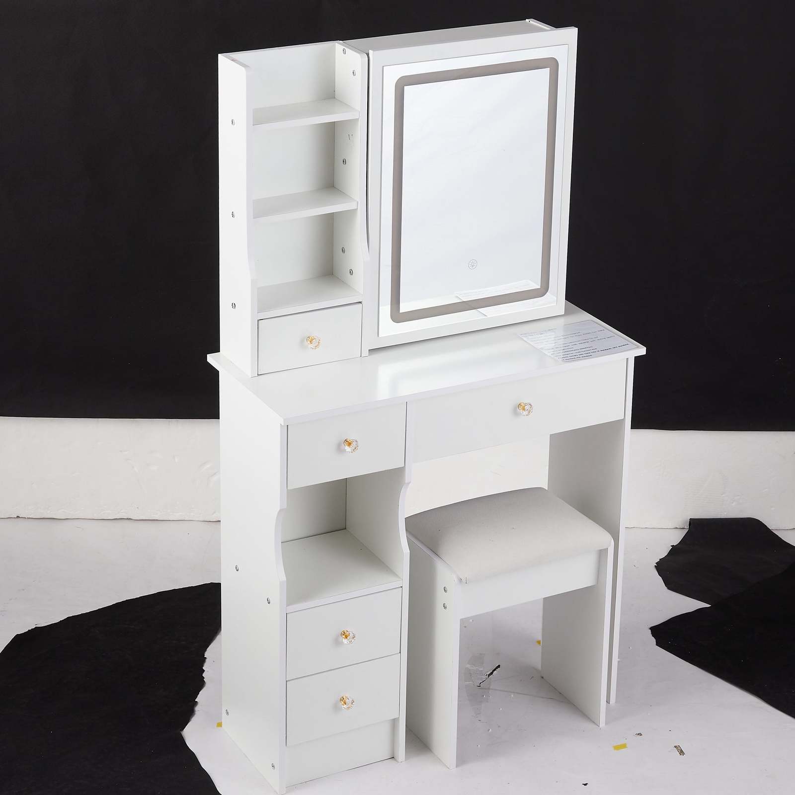 29.2" Small Vanity Desk & Stool | LED Mirror, Left Drawer Storage