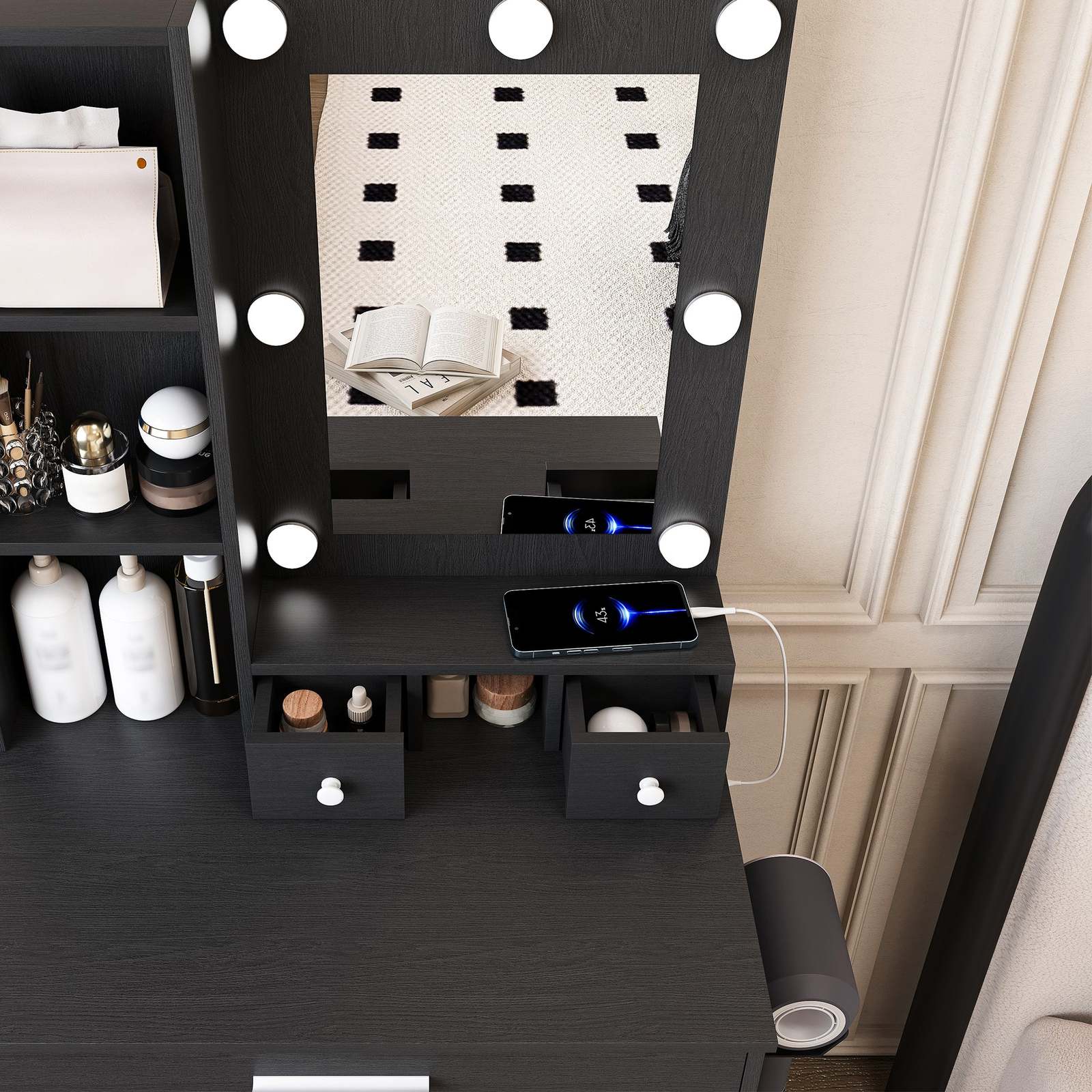 Black Vanity Table LED Mirror, Power, Stool and 50 similar items