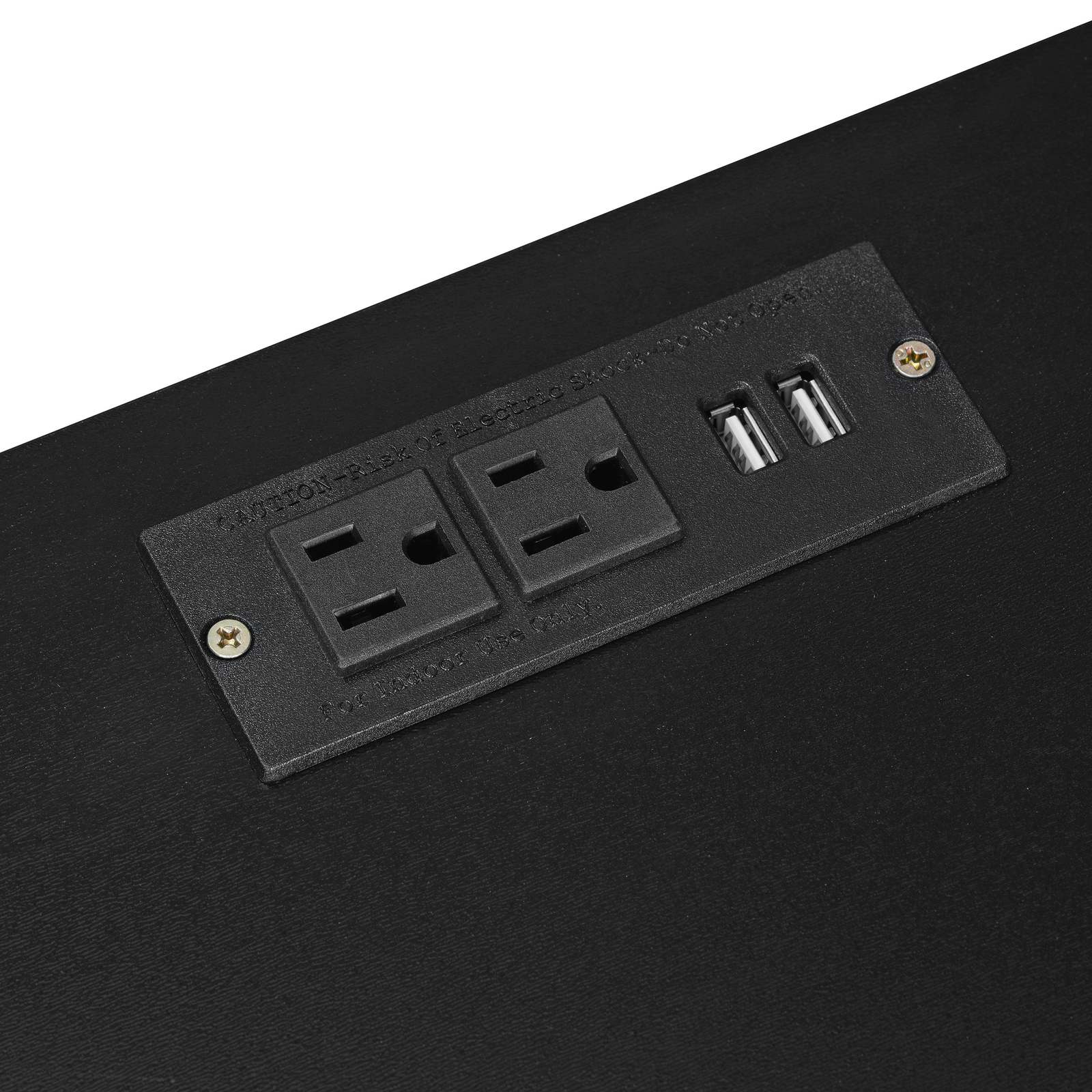 The desk includes 2 outlets and 2 USB ports. It's quite convenient to charge your hair dryer, mobile phone, curling iron, and other devices when necessary.