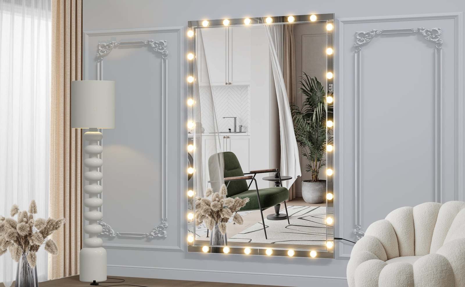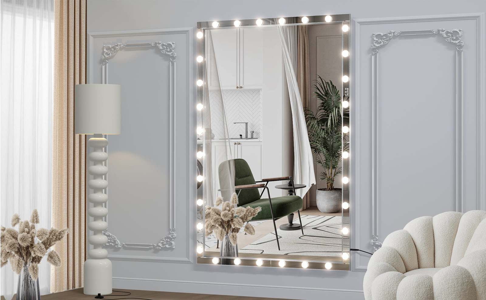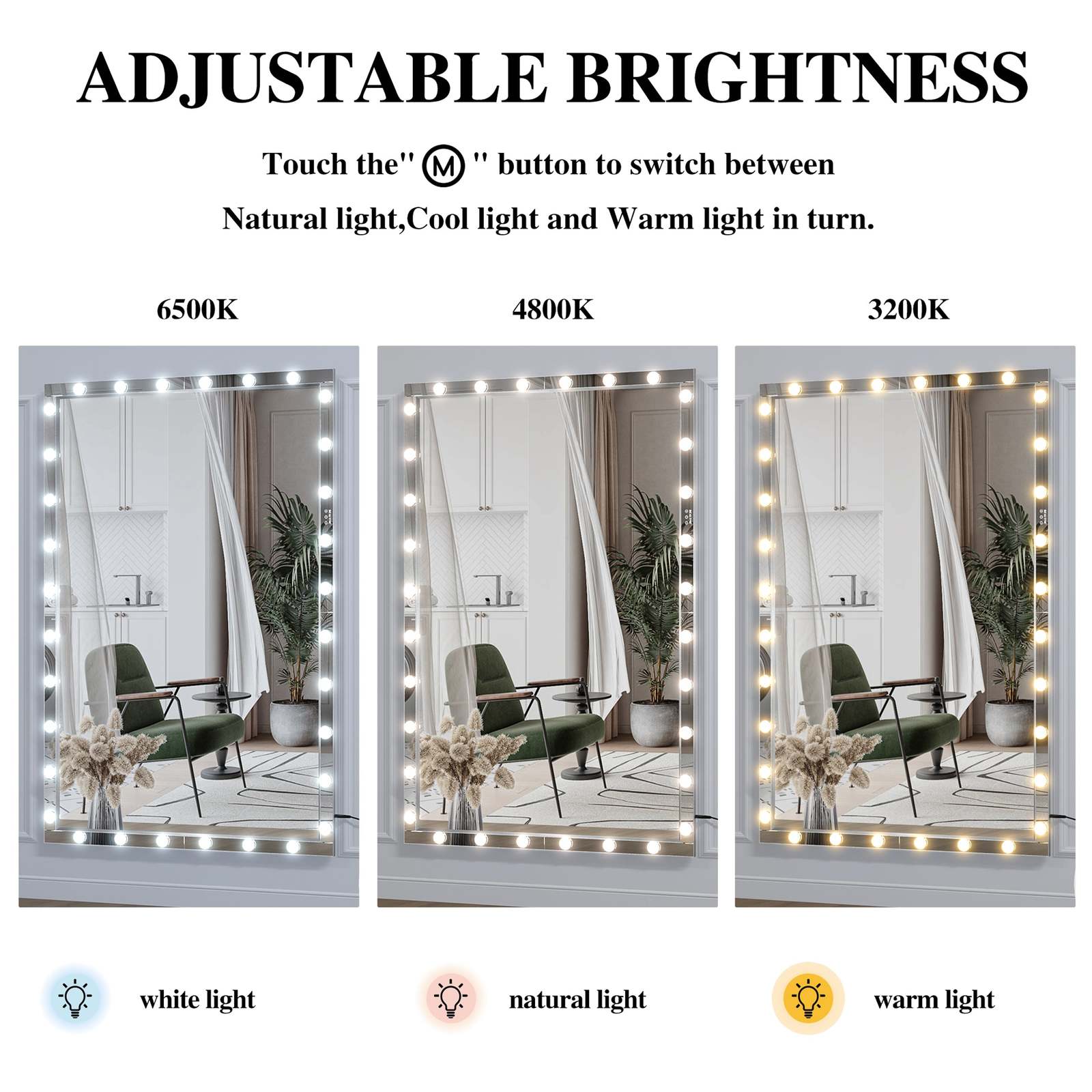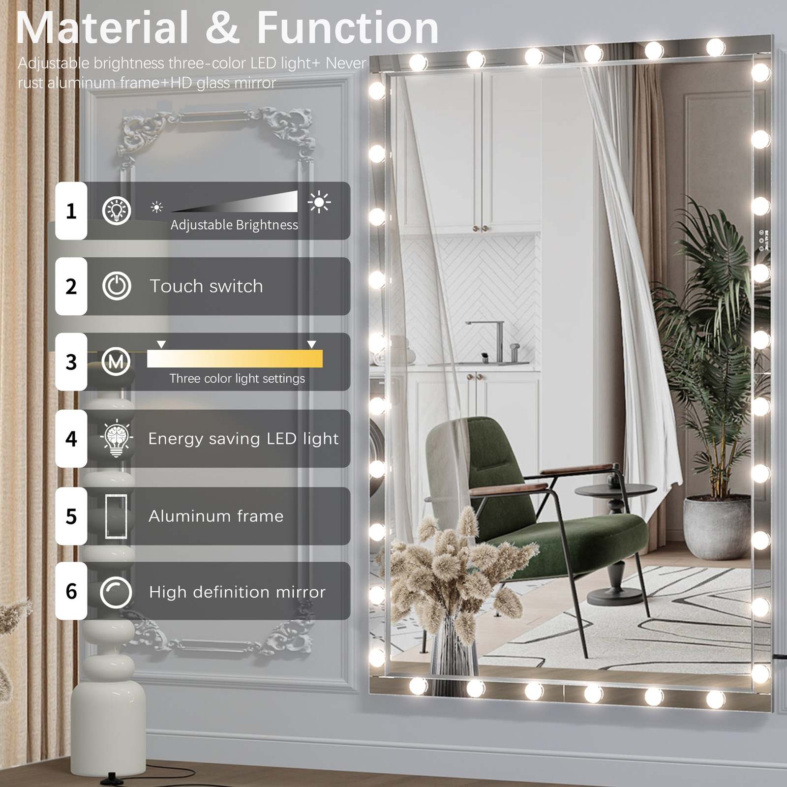 Various Application Scenarios: The floor mirror with lights is suitable for bedroom, bathroom, cloakroom, entrance, living room, restroom.The LED full length mirror can be a dressing mirror, a vanity mirror or a decorative mirror.