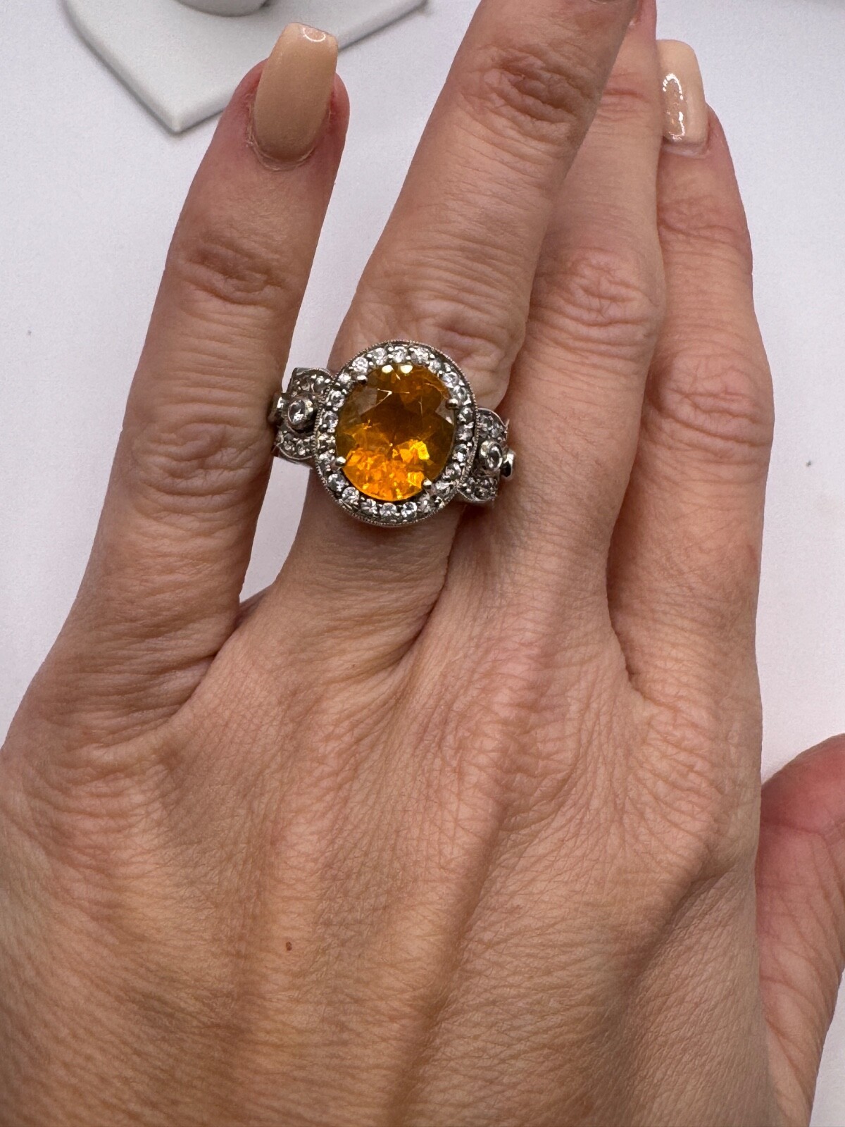 Large Simulated Fire Opal and CZ Sterling and similar items