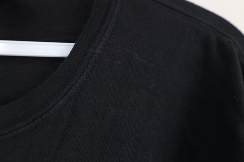 Blemishes front, back, collar/inner collar. Dark spots, pilling. Collar, arms/cuffs discolored. Color faded