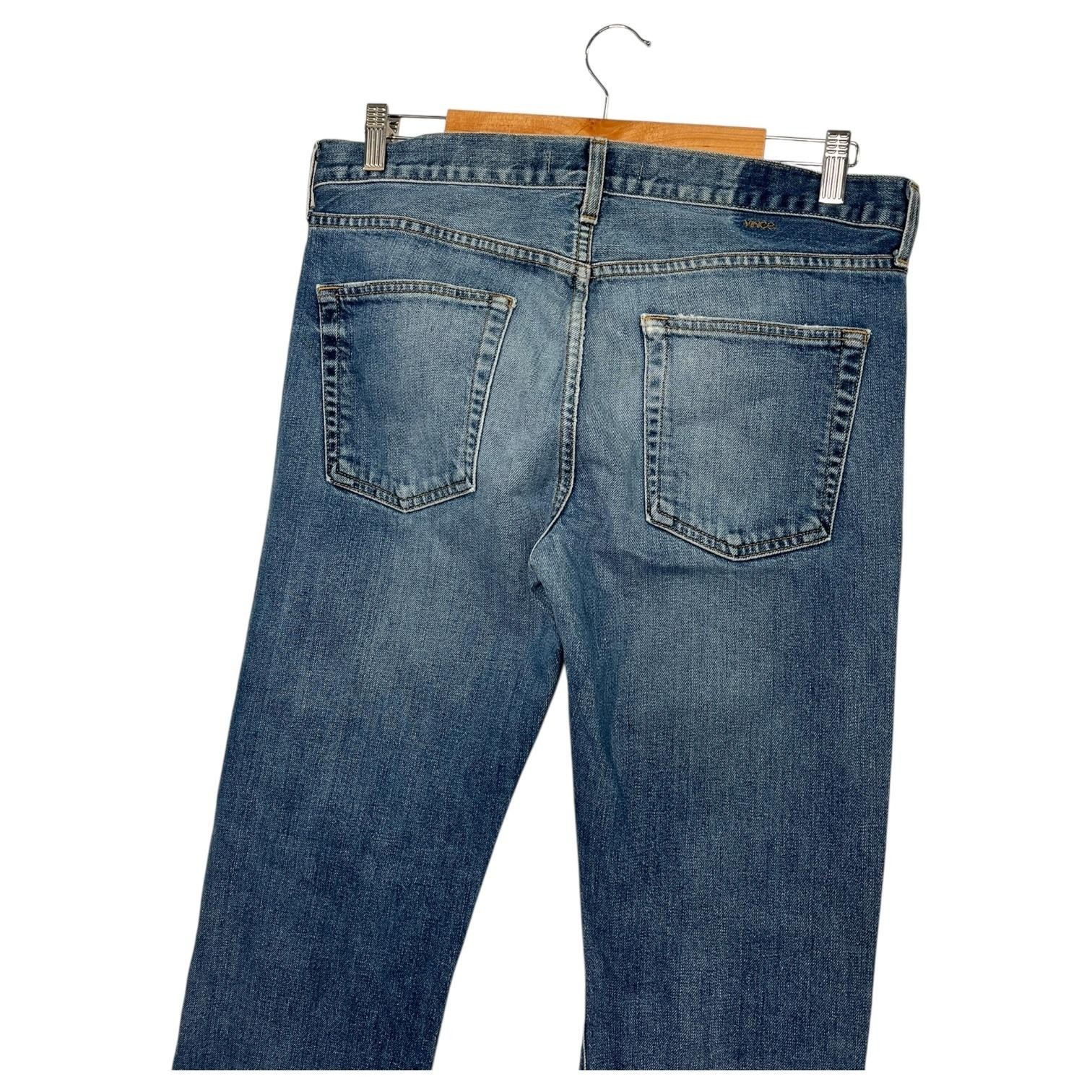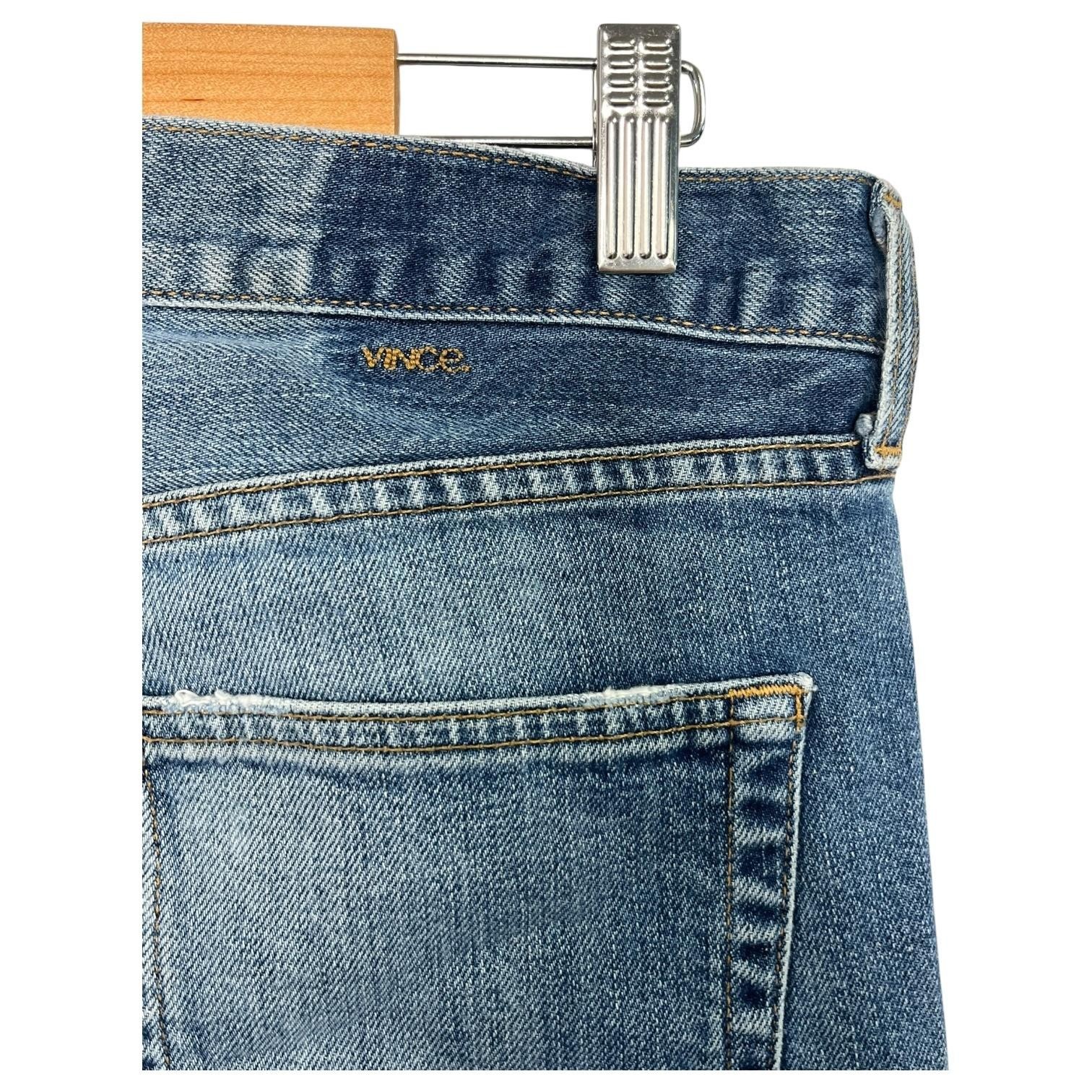 Vince Jeans Mens 33 Blue Distressed Straight Leg Button Fly Denim Made USA