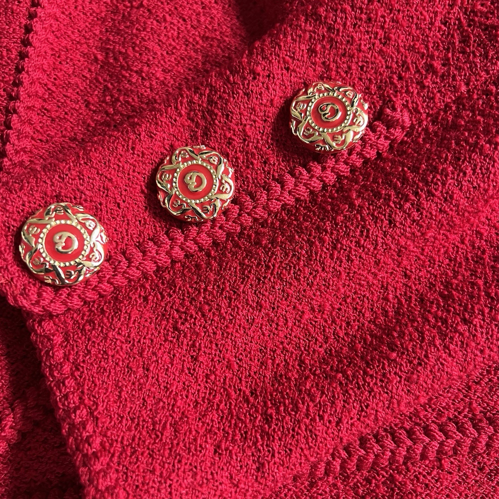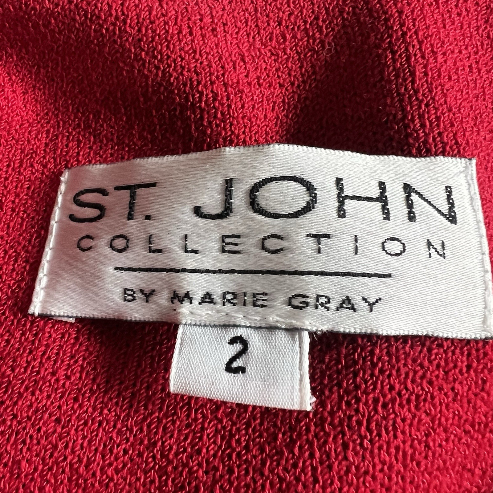 Vintage St. John Women’s Tweed Jacket Sz 2 Red Full Zip Blazer Gold Buttons EUC