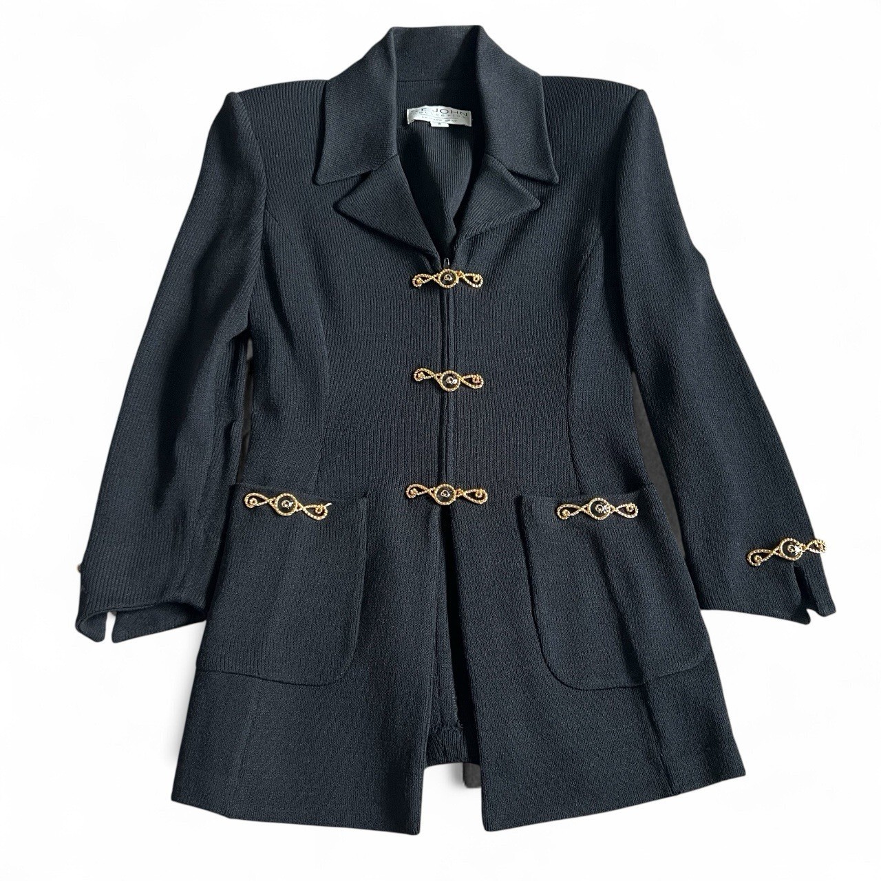 Vintage St. John Women’s Jacket Sz 2 Black Santana Knit Ornate Gold Buttons EUC