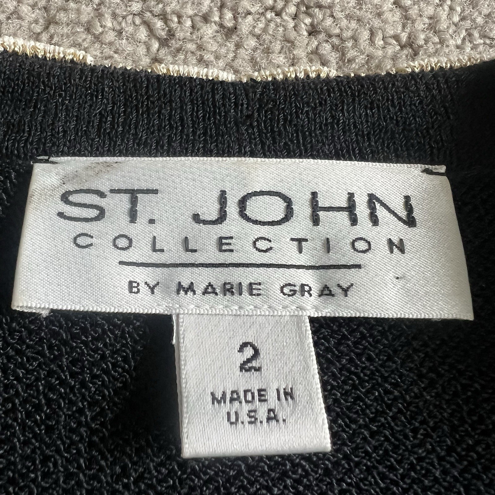 Vintage St. John Women’s Jacket Sz 2 Black Santana Knit Gold Details Made USA