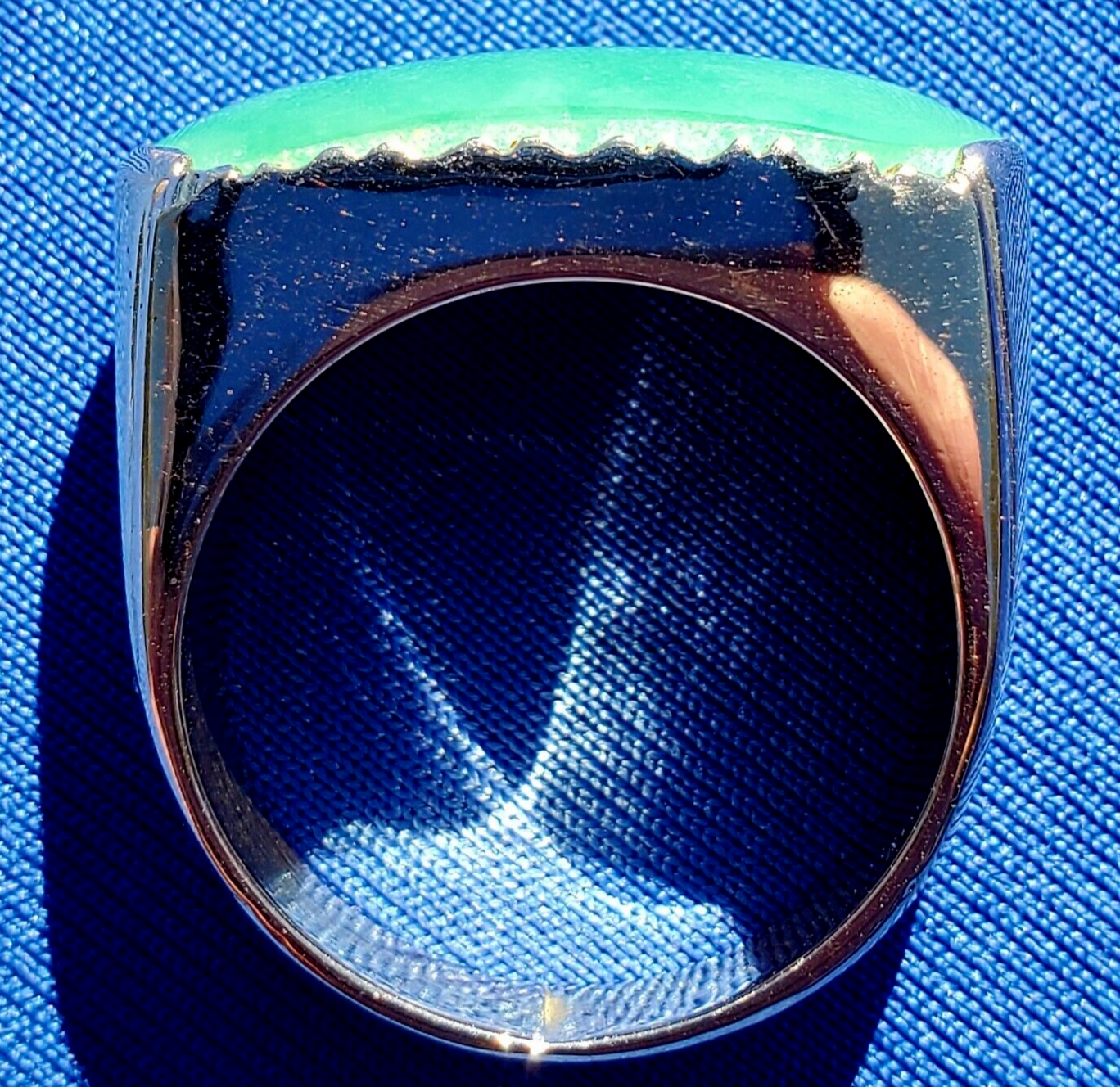 Earth mined Green Jadeite Jade Deco Ring Antique Solid 18k Gold Size 8.75