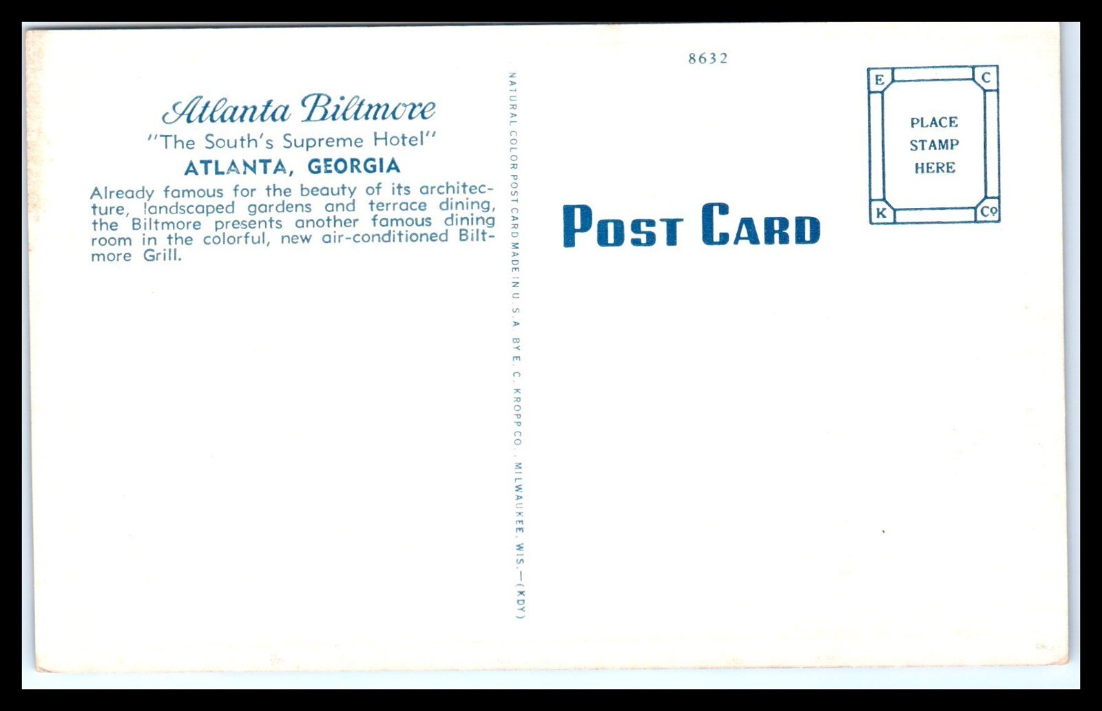 GEORGIA Postcard - Atlanta, Atlanta Biltmore, Biltmore Grill F27