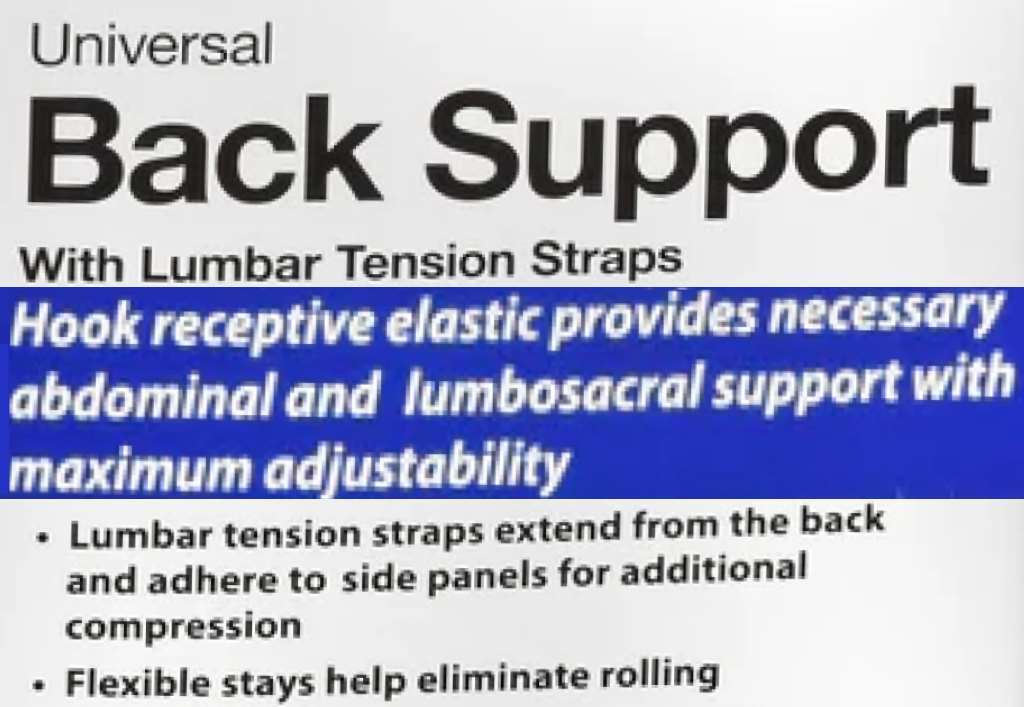 Lumbar tension straps extend from the back and adhere to side panals for additional support