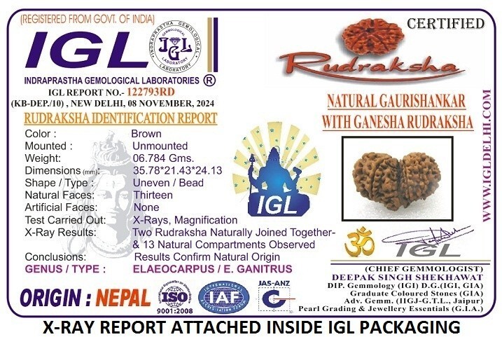 Rare Collector Size Gauri Shankar Ganesh Rudraksha - 13 mukhi - IGL Certified
