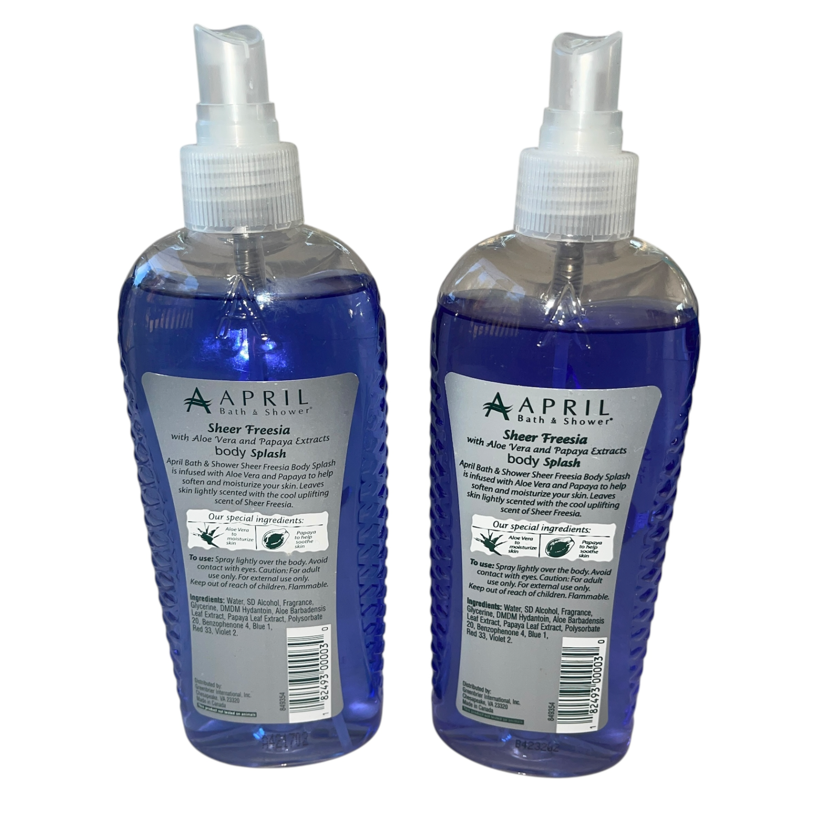 Sheer Freesia Fragrance Body Splash Mist 8.5 Oz Lot of 2 April Bath & Shower