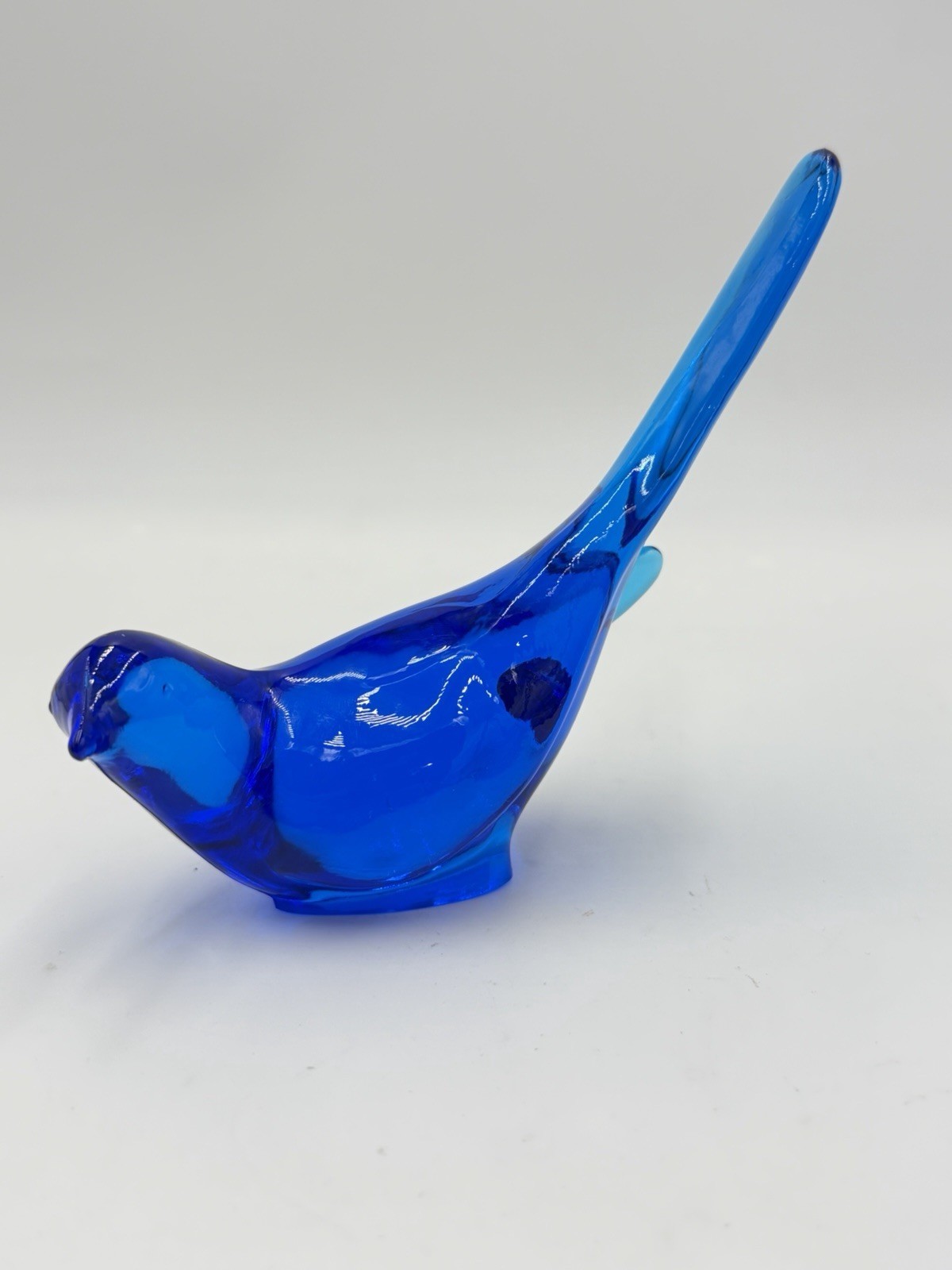 Vintage Fenton Cobalt Blue Art Glass Long Tail Bird of Happiness 5”x7” Figurine