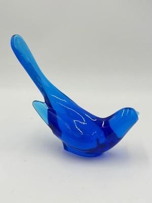 This vintage Fenton cobalt blue art glass long tail bird of happiness figurine is a medium-sized piece that would make a unique addition to any collection. Crafted in the United States during the 1970s, this abstractly designed bird figurine features a stunning blue color that adds a touch of whimsy to any decor. Perfect for winter or bird enthusiasts, this collectible item showcases the intricate craftsmanship and vibrant colors that Fenton is known for.