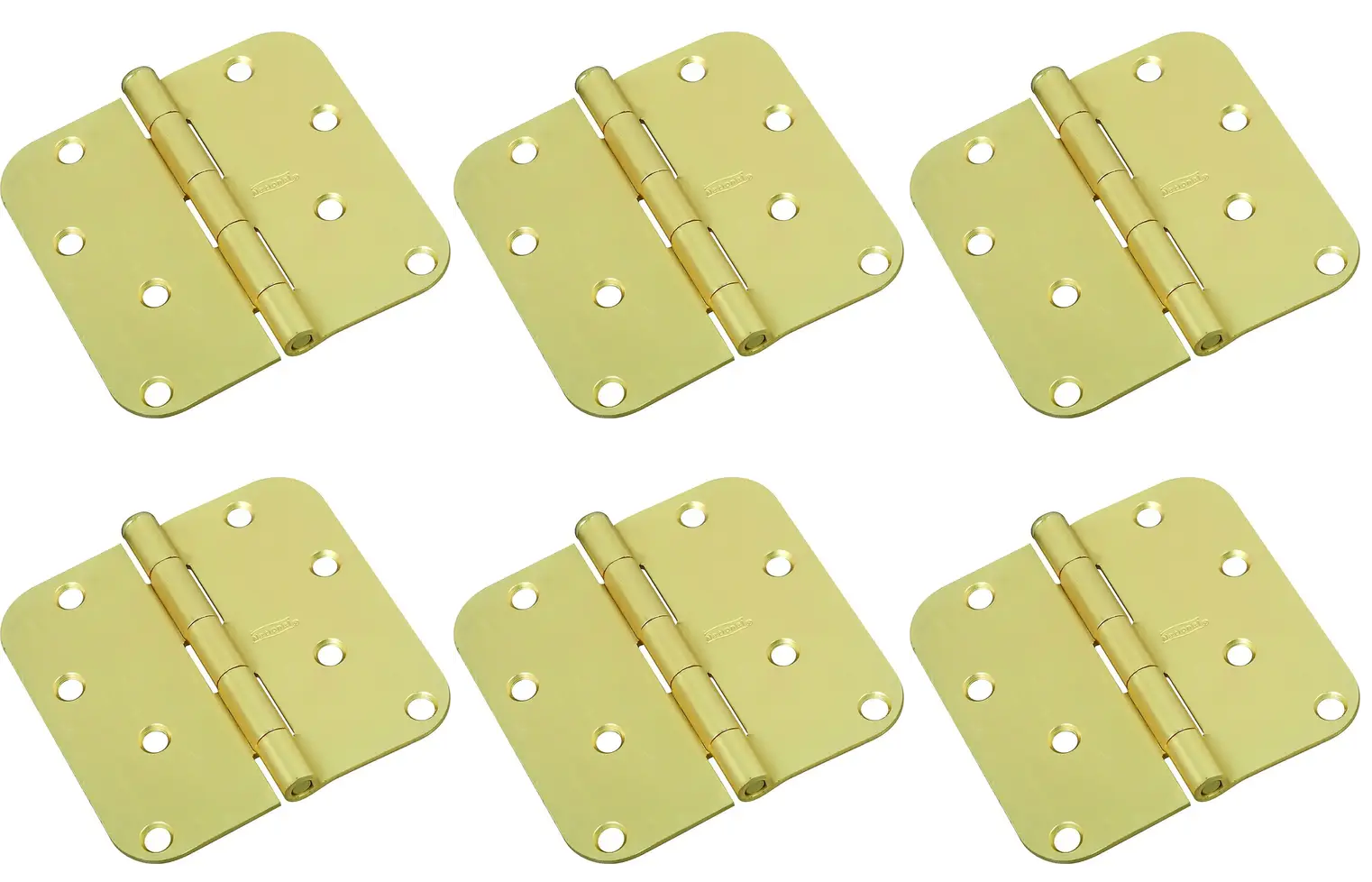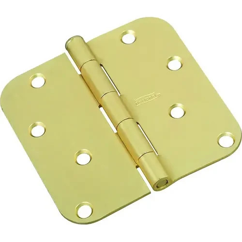 The National Hardware N830-225 4-inch full-mortise door hinge is a heavy-duty, satin brass-finished hinge engineered for smooth, long-lasting performance on interior residential doors. Constructed from heavy-gauge cold-rolled steel with a corrosion-resistant satin brass plating, it delivers superior strength and enduring aesthetics for high-traffic applications. The five-knuckle full-mortise design ensures even weight distribution and stable door alignment, while the 5/8-inch radius round corners provide a refined, flush fit within standard door and frame mortises. A non-rising, removable pin simplifies installation and removal without requiring complete disassembly, and all eight screw holes are precision countersunk for a clean, flush mount with no protruding heads.