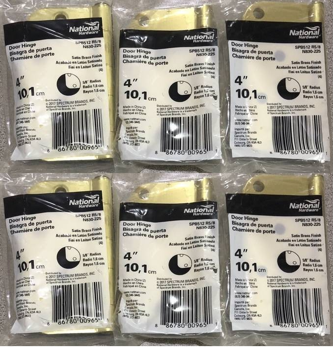 Door Hinge 4", Full-Mortise, Steel, Satin Brass, National Hardware N830-225 (6-PACK)