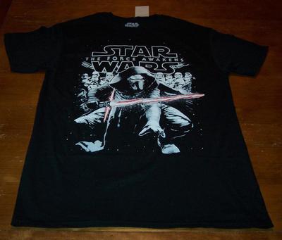 This is a STAR WARS THE FORCE AWAKENS KYLO REN T-shirt. It is a size LARGE, and it is NEW with the tag. It is 22 inches from armpit to armpit and 31 inches in length. Rare ORIGINAL OLD NEW STOCK from 2015! Combine auctions to save on shipping. AD