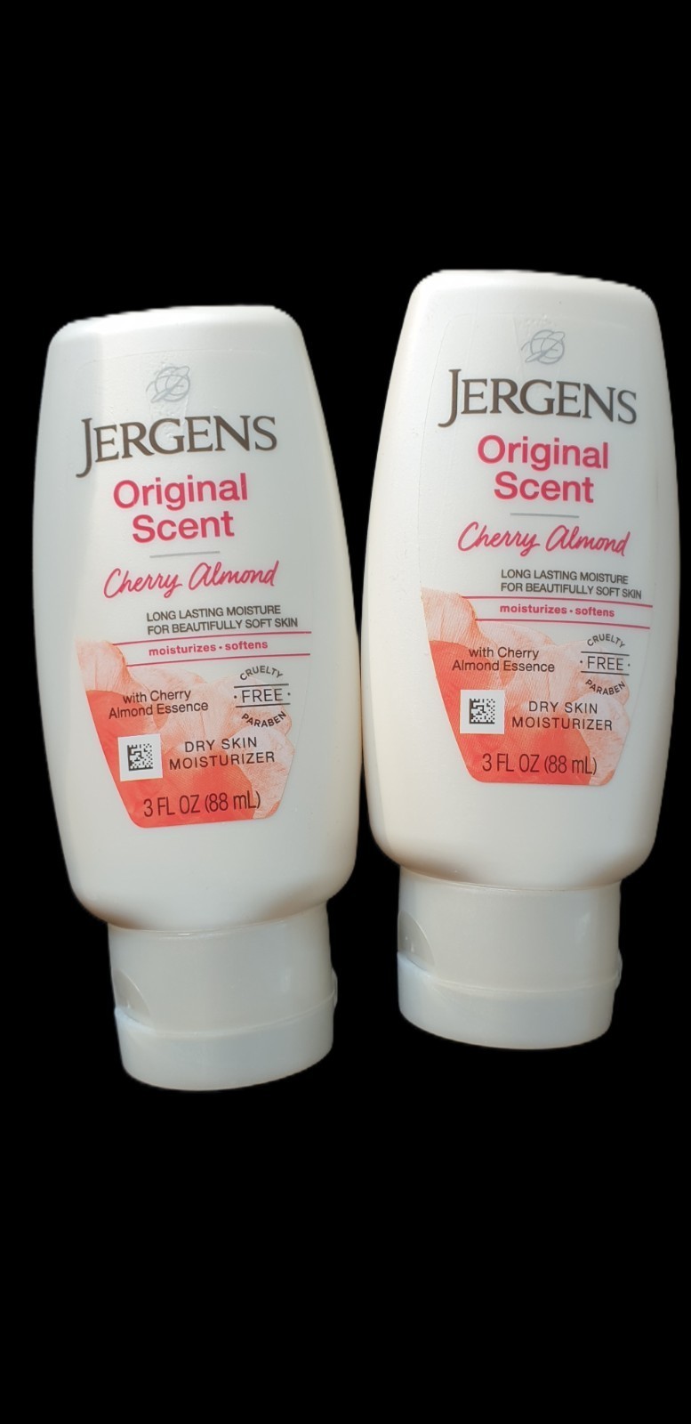 Jergens Original Scent Cherry Almond Dry Skin Moisturizer Body Lotion 3Oz 2-Pack.