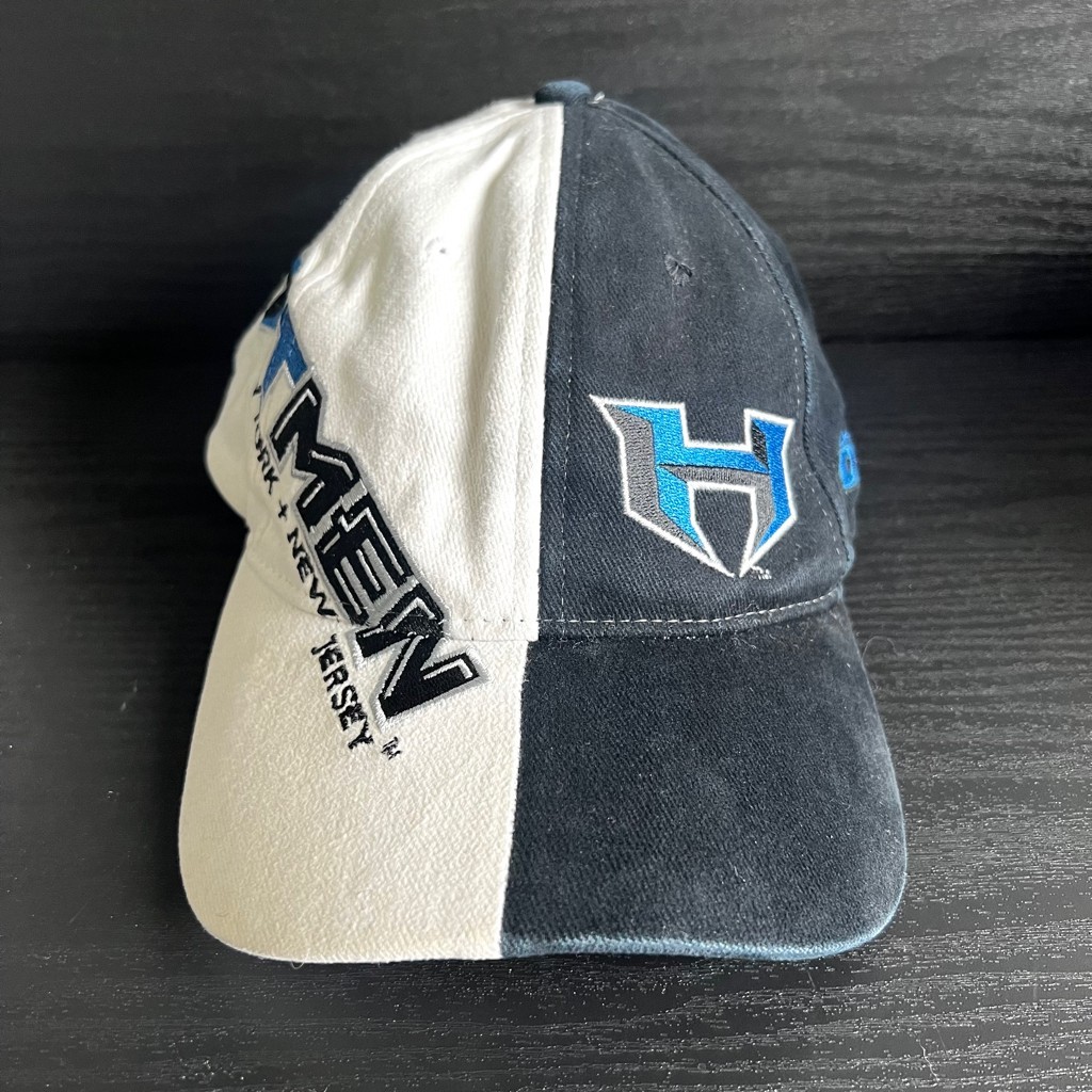 Step up your headgear game with this vintage XFL Hitmen Spellout Split Dad Cap! This unique strapback hat features a bold, split-design color scheme with a classic navy blue on one side and a crisp white on the other, capturing both style and spirit of the beloved football team. Made with durable materials, the cap includes an embroidered Hitmen logo on the front, with precise spellout embroidery that showcases the New York/New Jersey team?s identity. Its comfortable fit is guaranteed by an adjustable strap in the back, making it a one-size-fits-most. Whether you're a die-hard XFL fan or a collector of vintage sports apparel, this hat is sure to be a standout addition to your collection.
