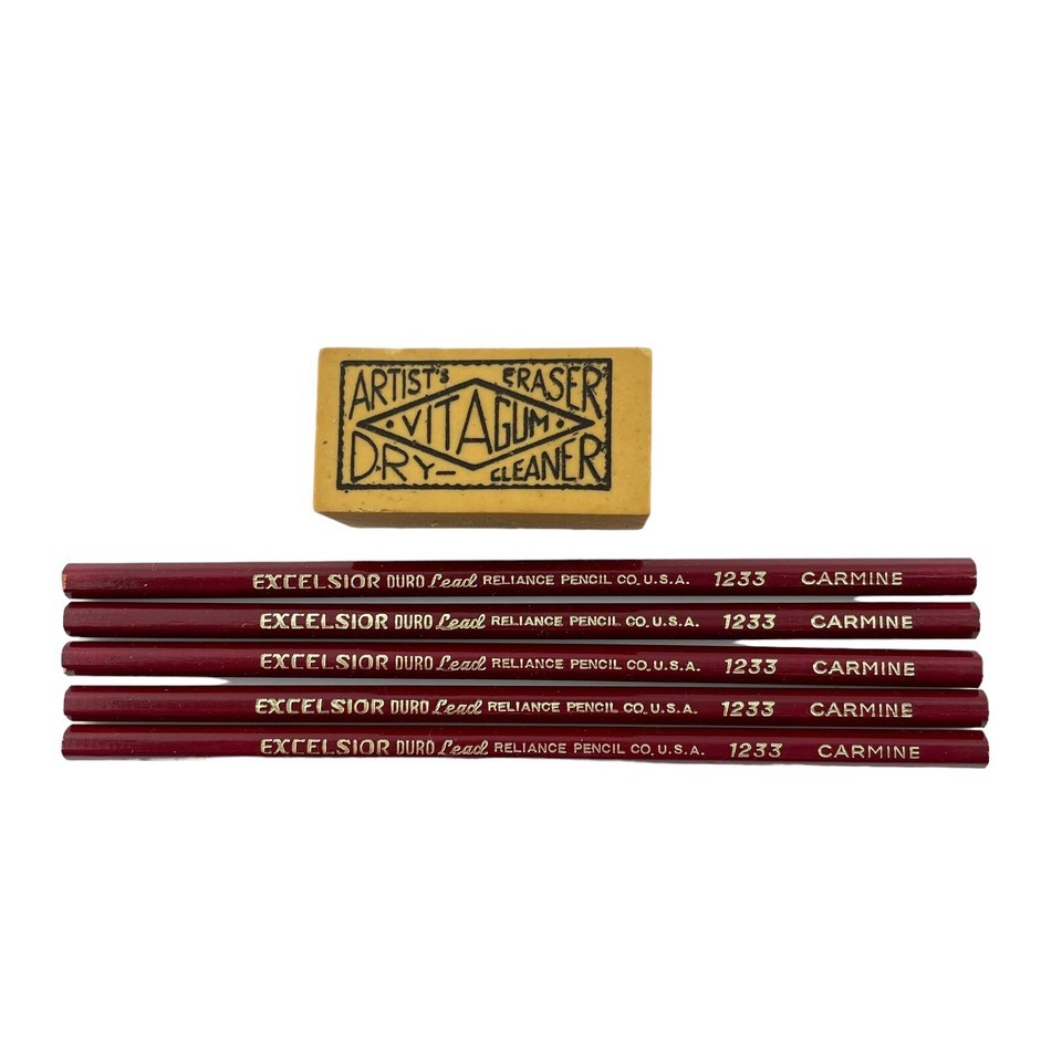 Vintage Pencil Lot and Vitagum Eraser Reliance Excelsior Duro Lead 1233 Red